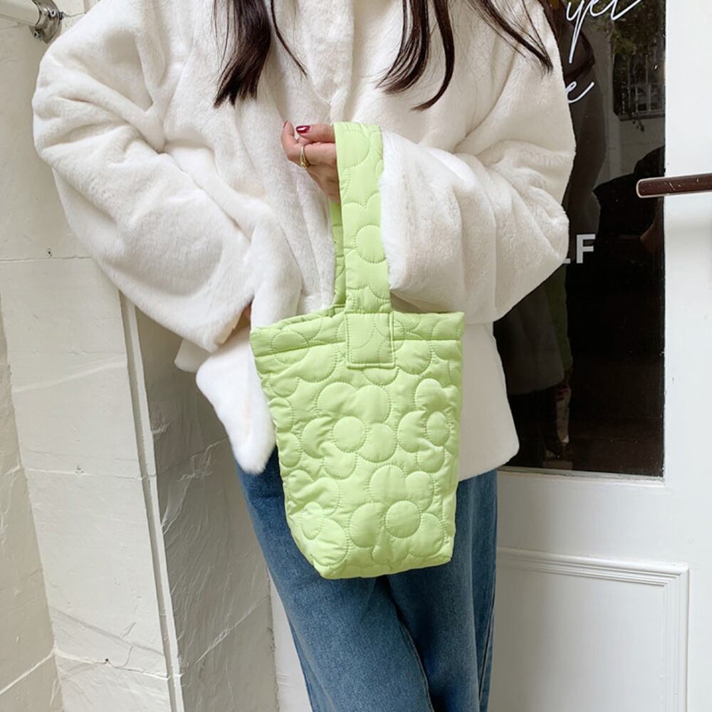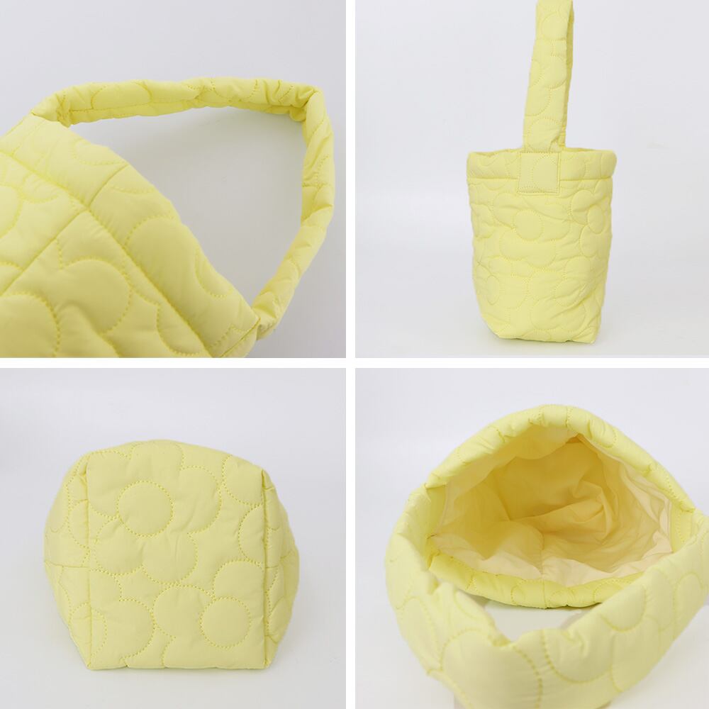キルティングトート お散歩バッグ 花柄ステッチ 大人可愛い バケツバッグ 縦型 ハンドバッグ 手提げカバン おしゃれ