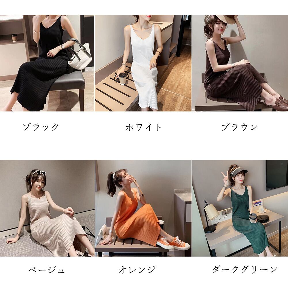 キャミワンピ リブニット レディース ロングワンピース フィット感 スリット入り セクシー シンプル 可愛い 春秋 リブ