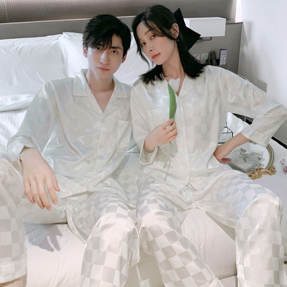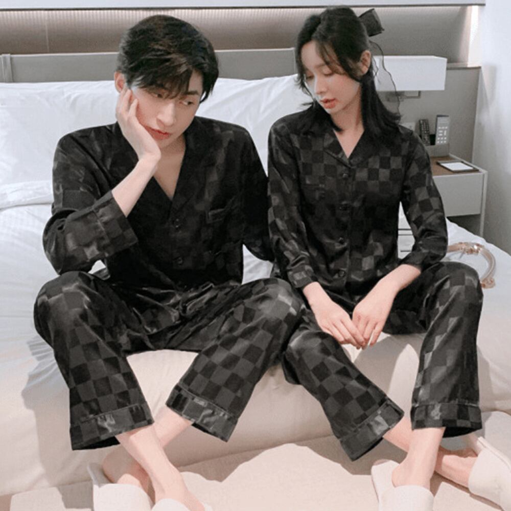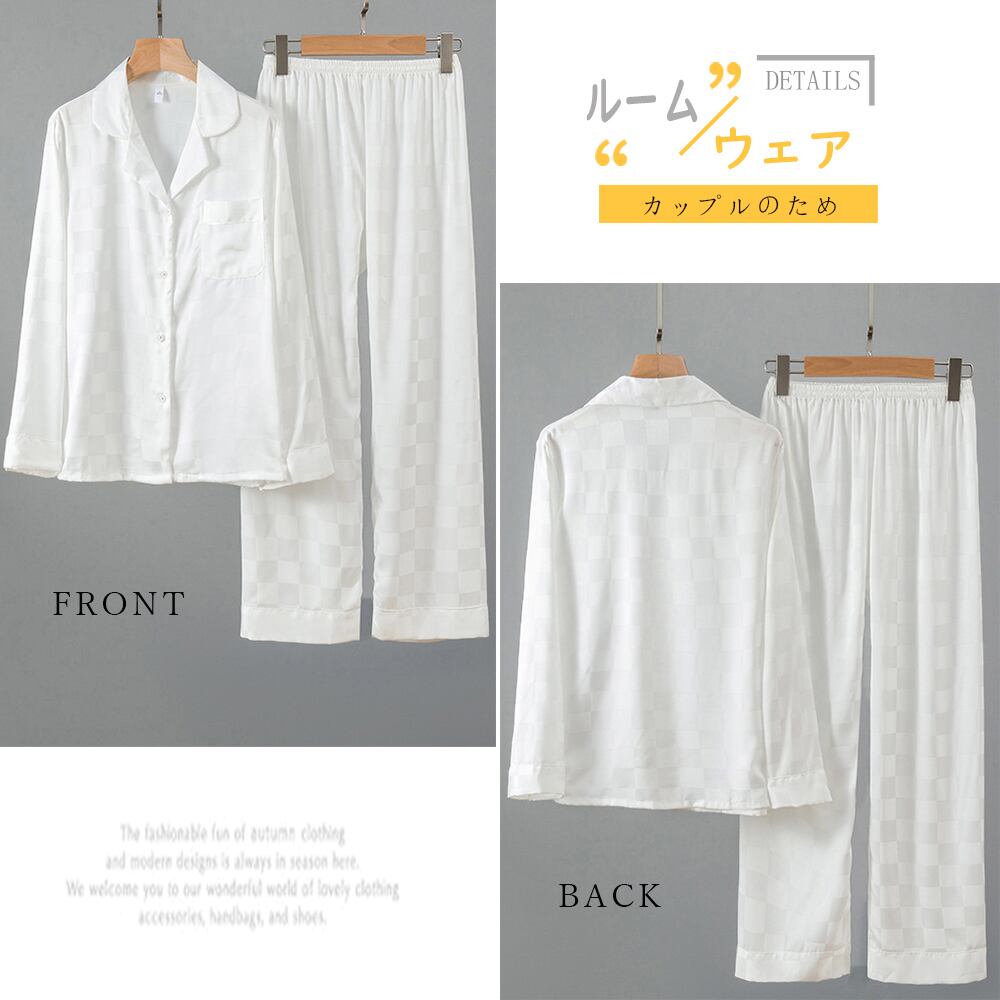 長袖 部屋着 ペアルック カップル 夫婦 お揃い パジャマ シルクタッチ  ゆったり 上下セットアップ 寝巻きレディース