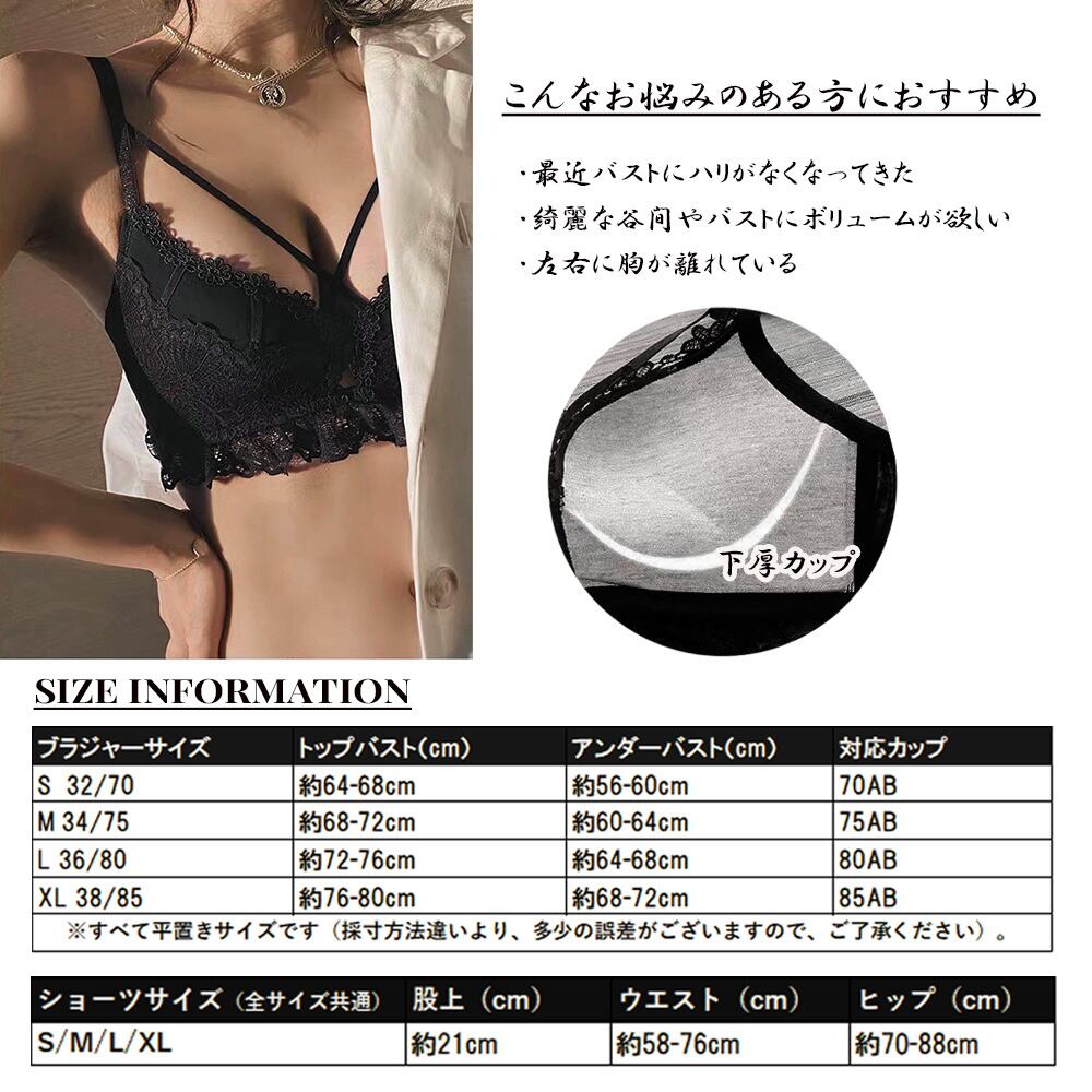 レースブラ ショーツ 上下セット 胸元クロス ブラセット 脇高 インナー 小胸 盛りブラ バストアップ 脇肉 痛くない