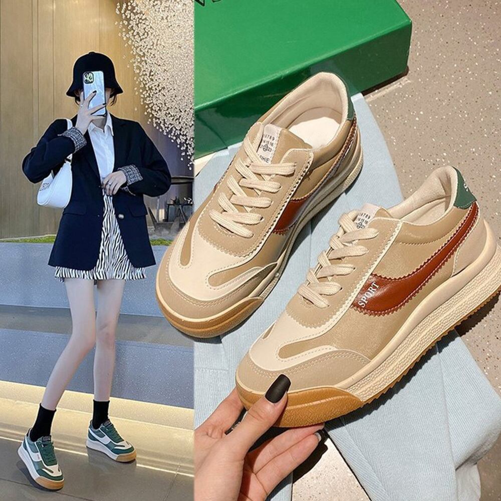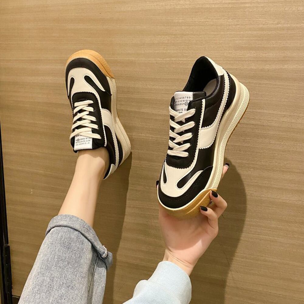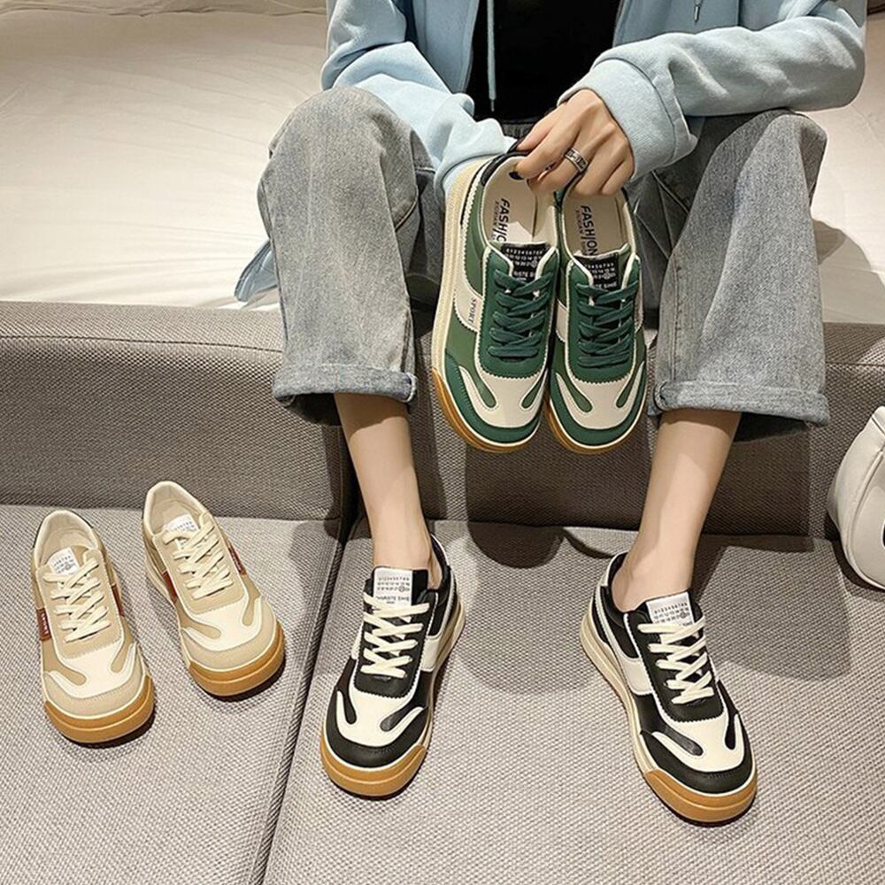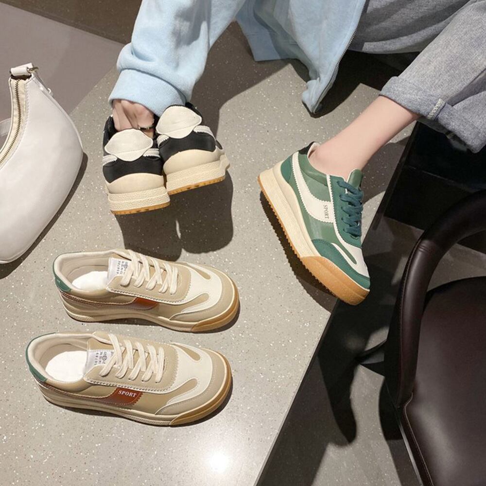 美脚シューズ 運動 レトロ紐スニーカー 通勤通学靴フラット