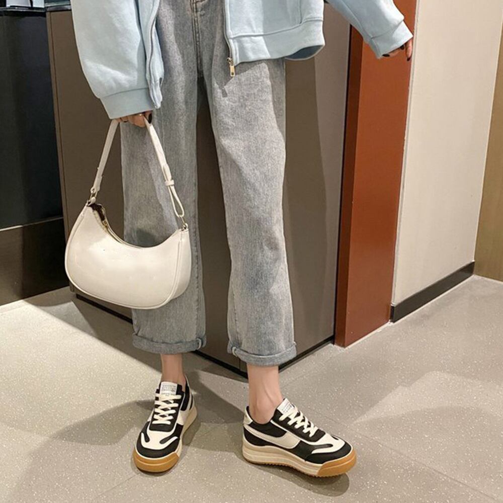 適度なリラックスさと抜け感のあるキレイめのシルエットで、こなれた大人を演出してくれる韓国風厚底スニーカー