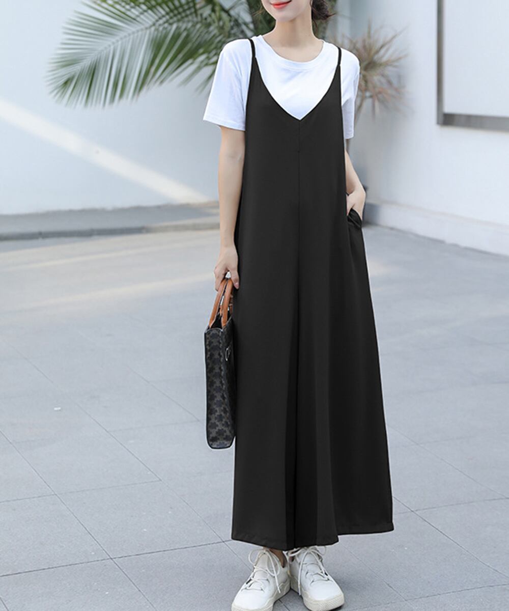 サロペットパンツ オールインワン 無地
