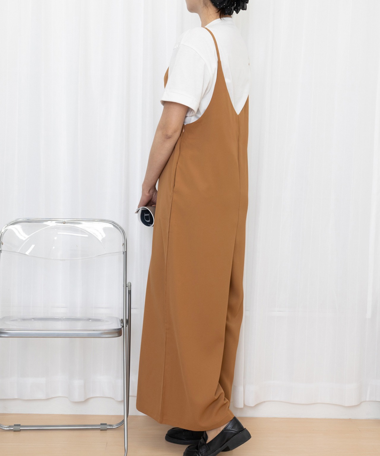ジャンパースカートのようなオトナ可愛いキャミソールサロペットパンツ