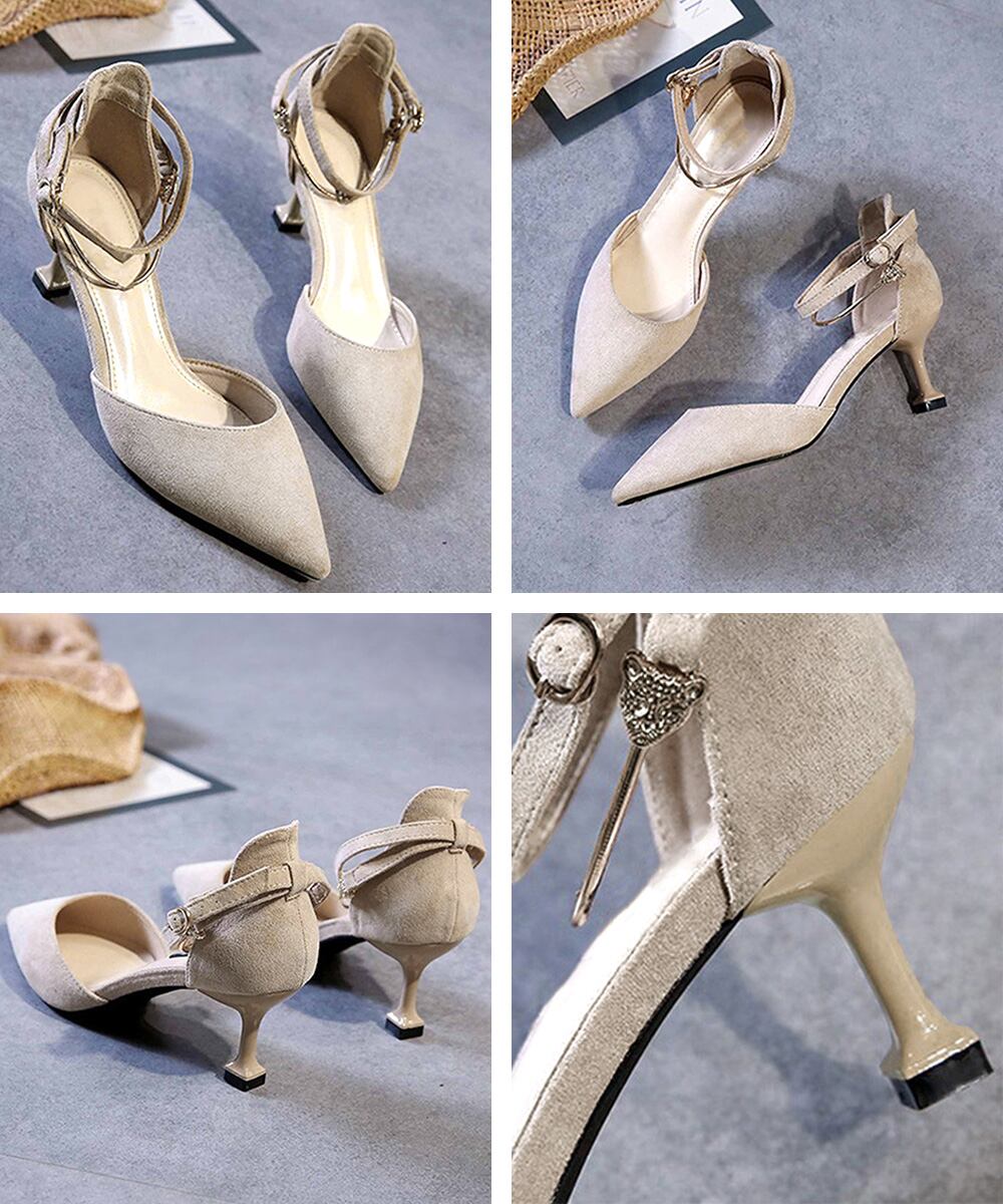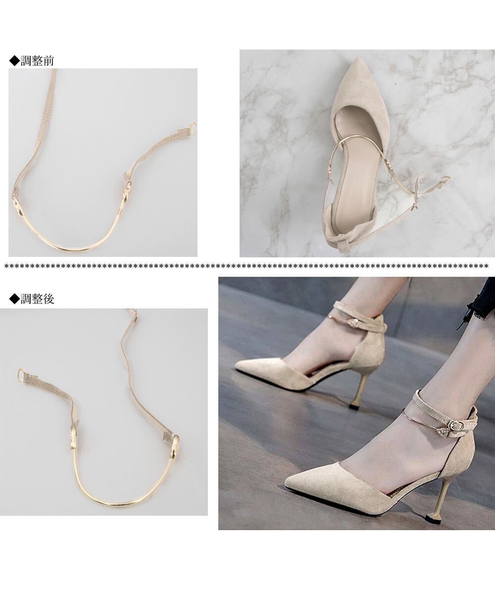 滑らかなスエード調生地で高級感を醸し出し、シルエットを追求した究極の美脚ダブルストラップパンプス