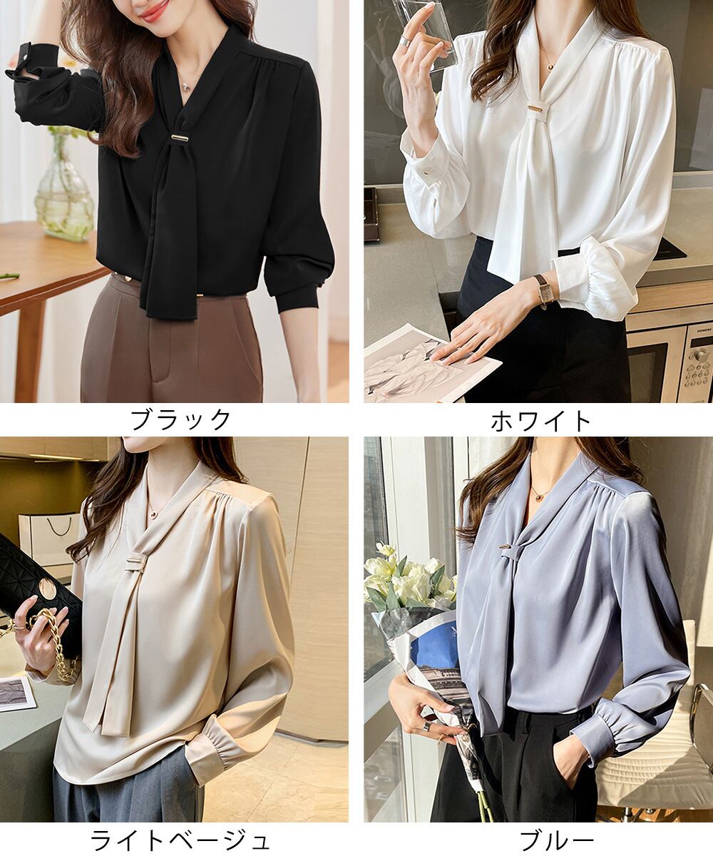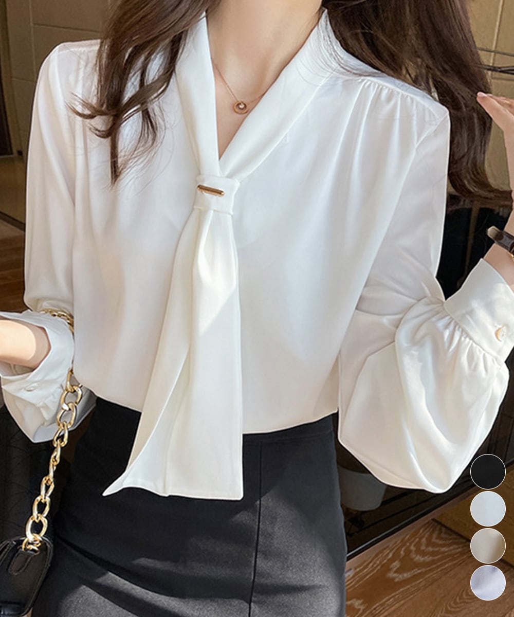 韓国上品 スカーフタイブラウス オフィスカジュアル トップス 大人女性 とろみシャツ通勤長袖シャツブラウス 30代40代