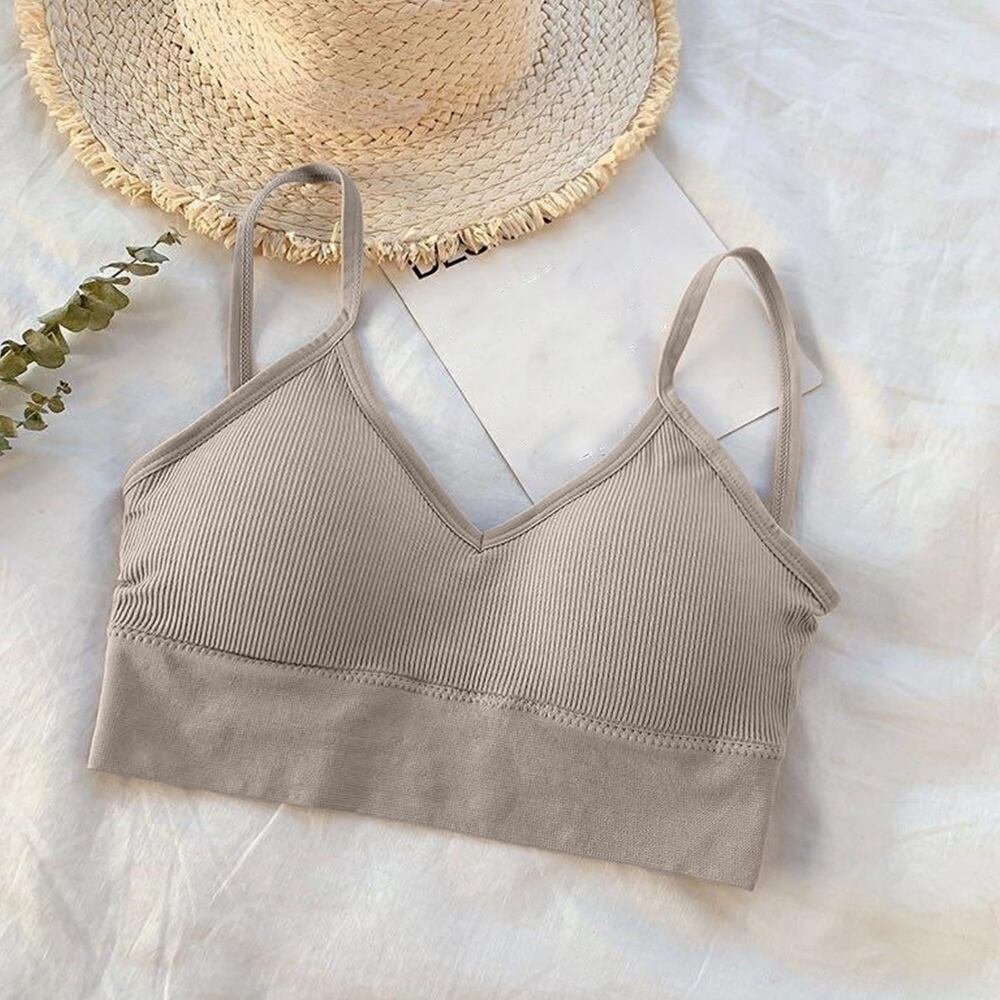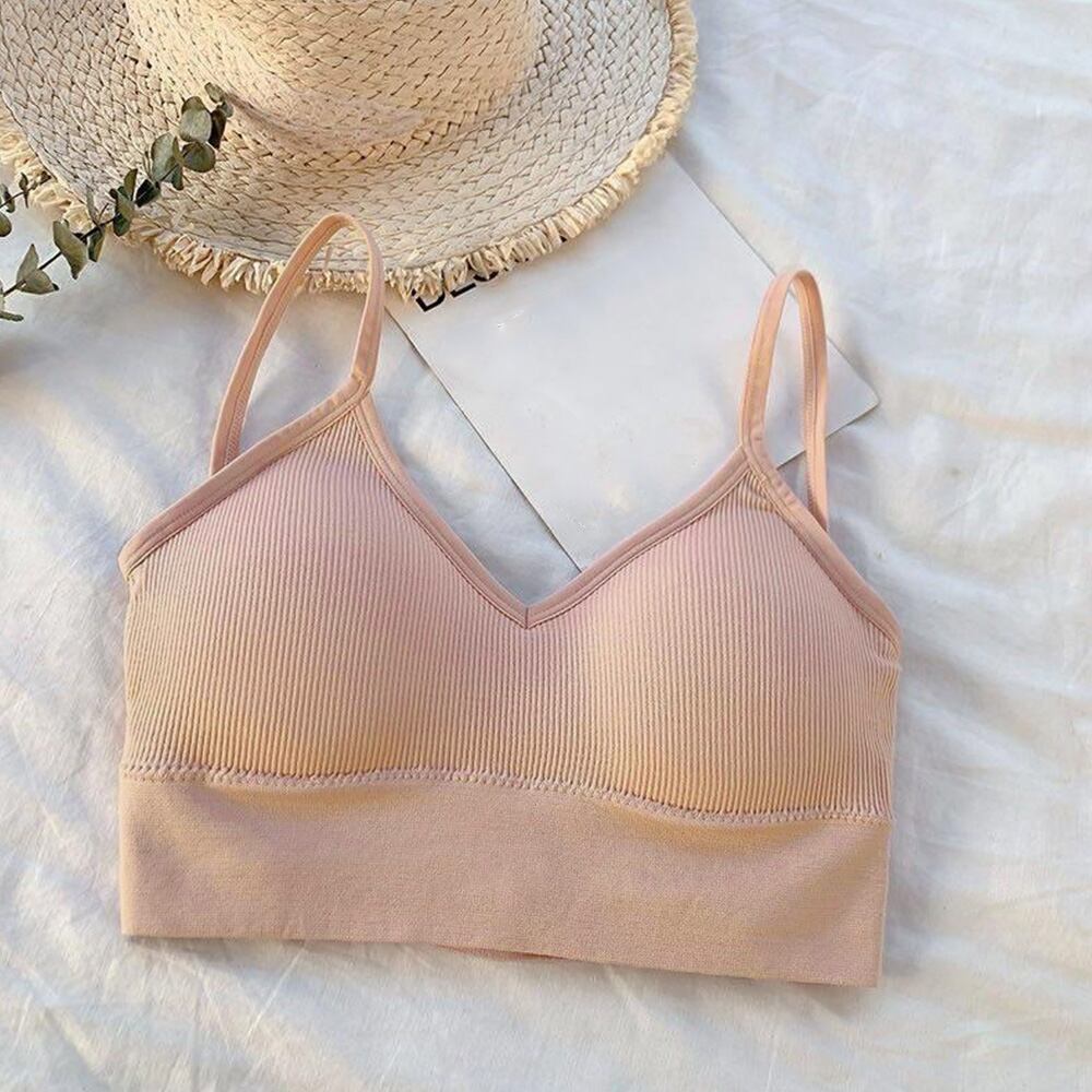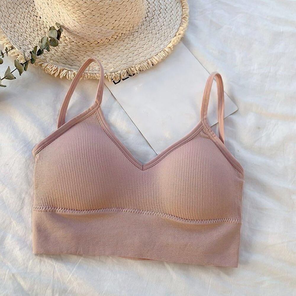 バッククロスインナー カップ付き  ショート丈 リブキャミソール ベアトップブラ
