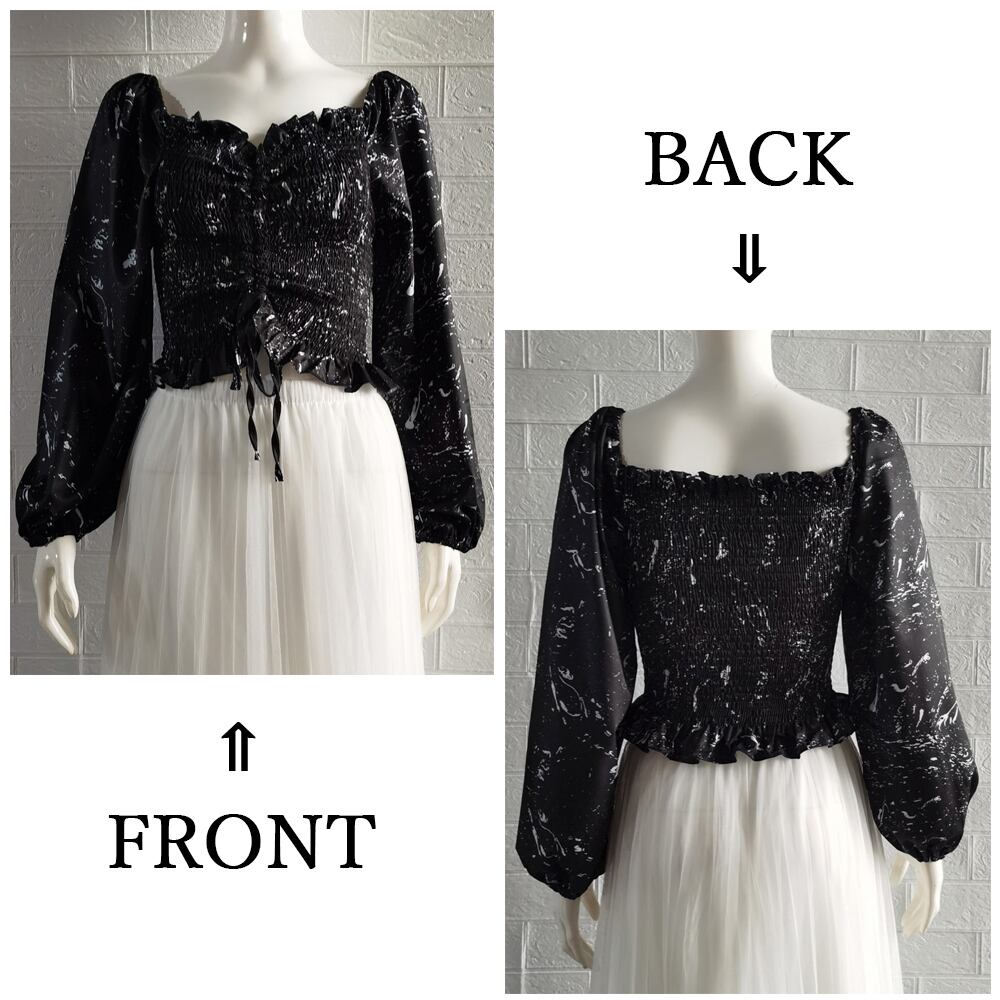 2way トップス シャーリング  ボリュームスリーブ 肌見せトップス 薄手 シャツブラウス 長袖