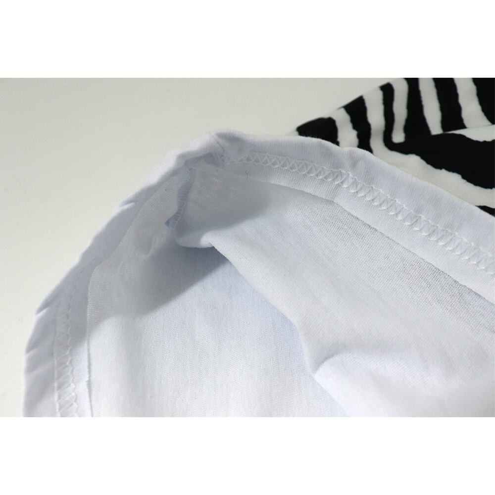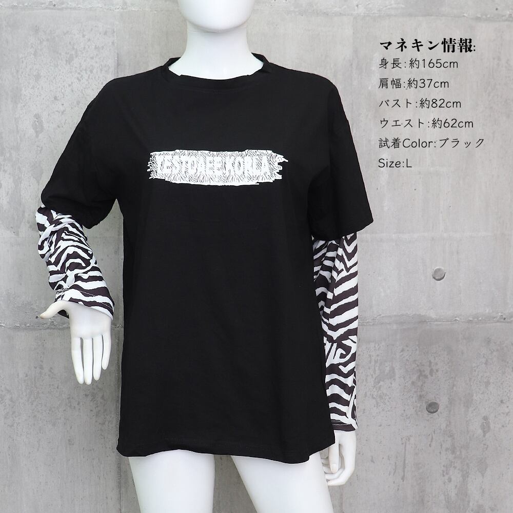 半袖とゼブラ柄をドッキングさせたフェイクレイヤードデザイン。