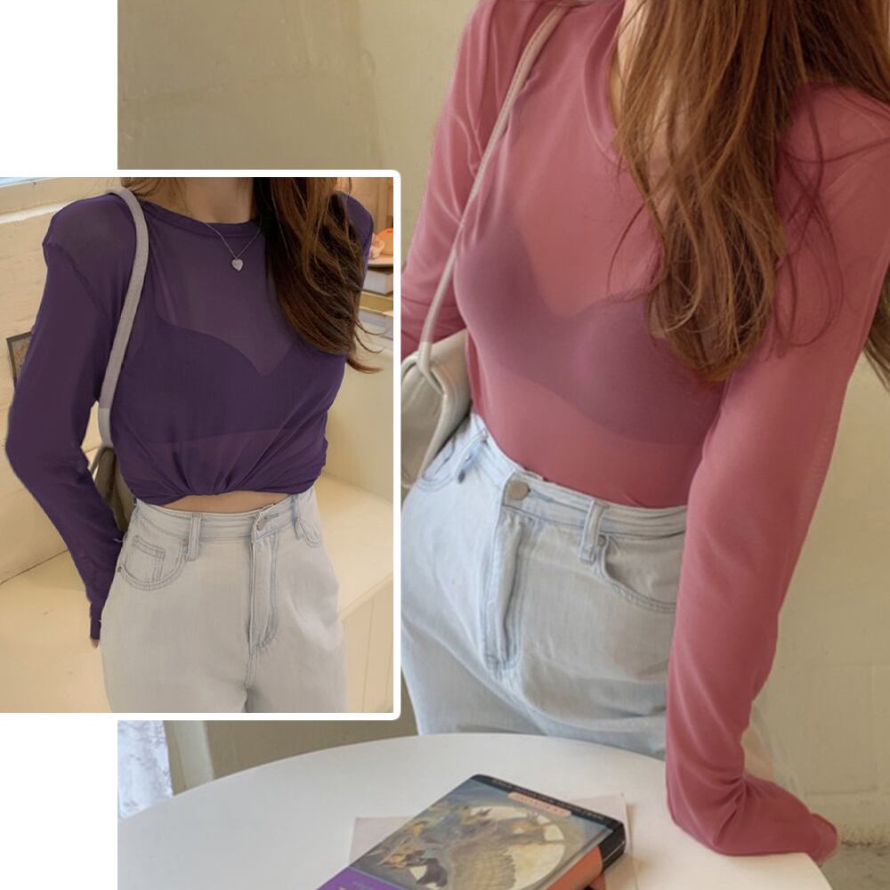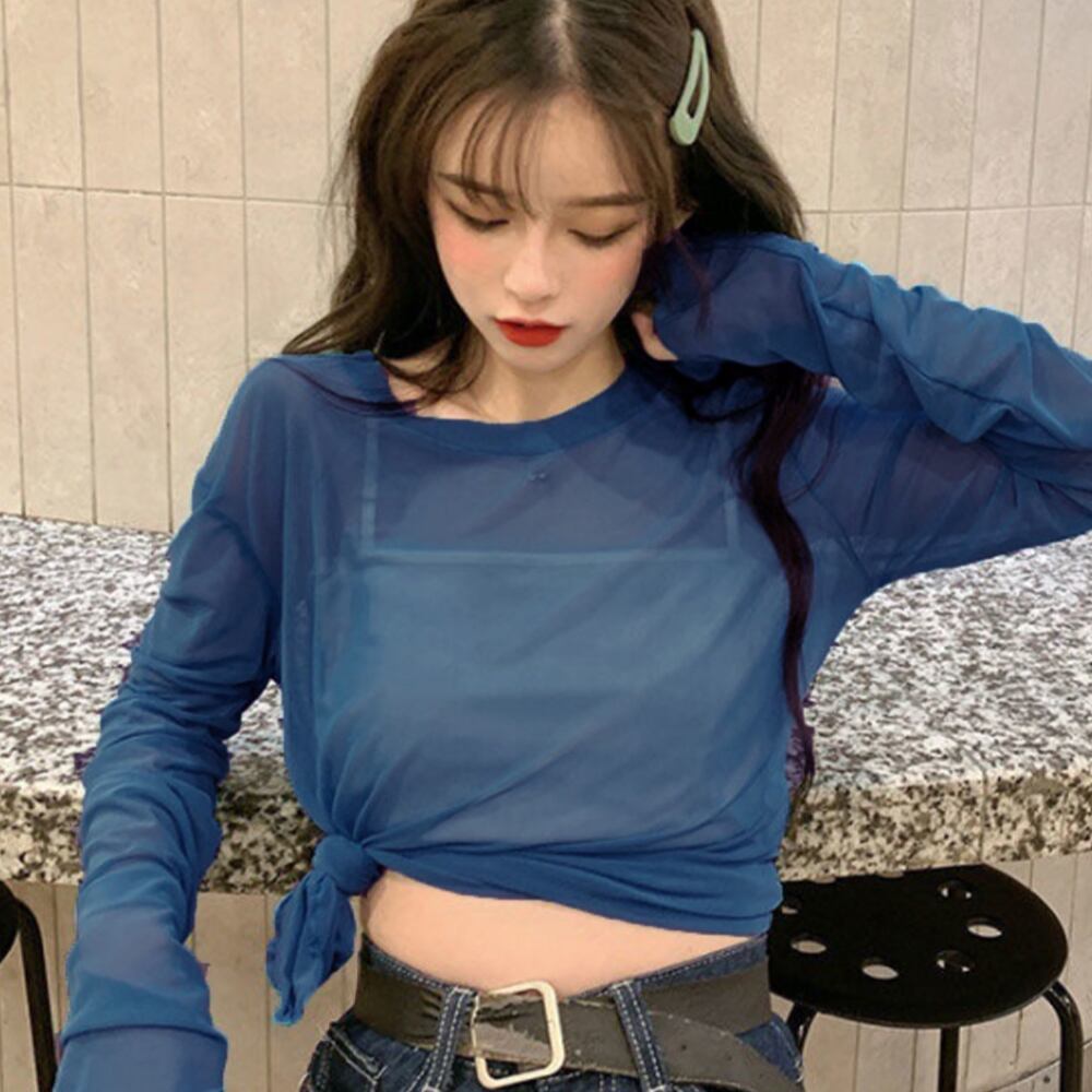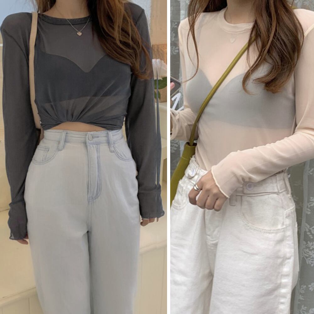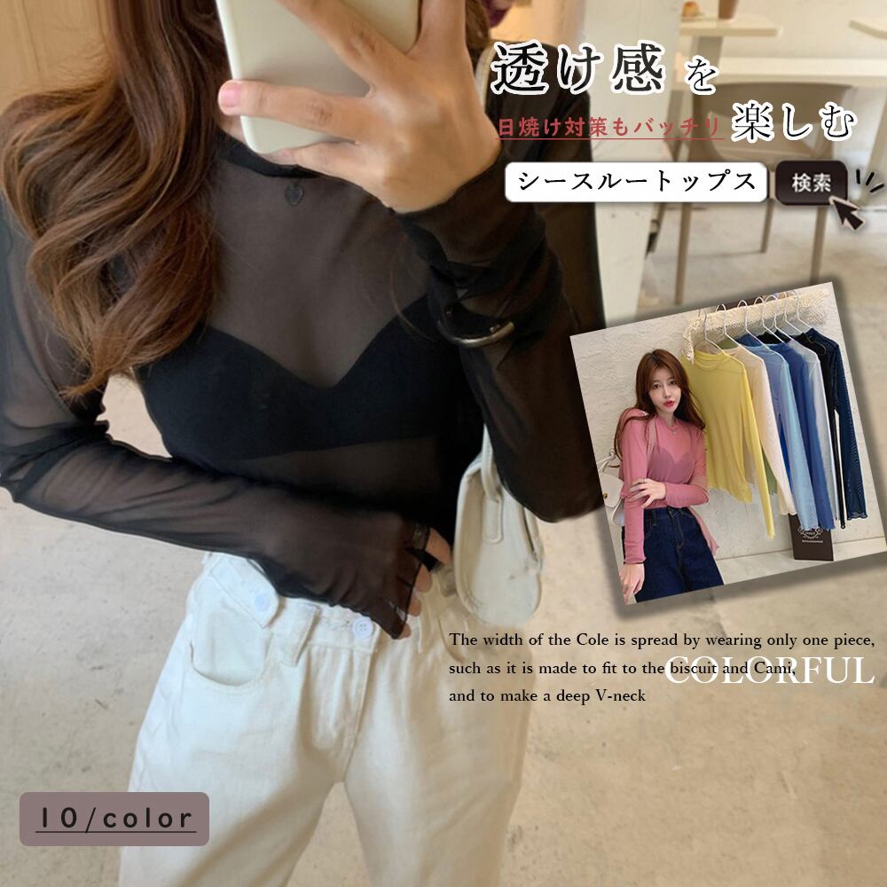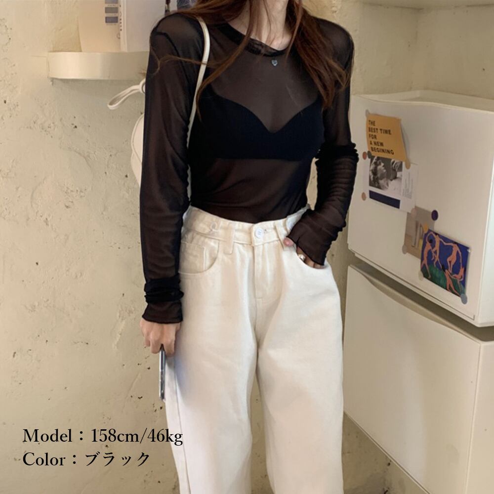 ラウンドネック ブラウス 透け感 韓国ファッション ソフト セクシー 春夏