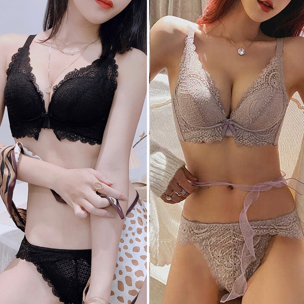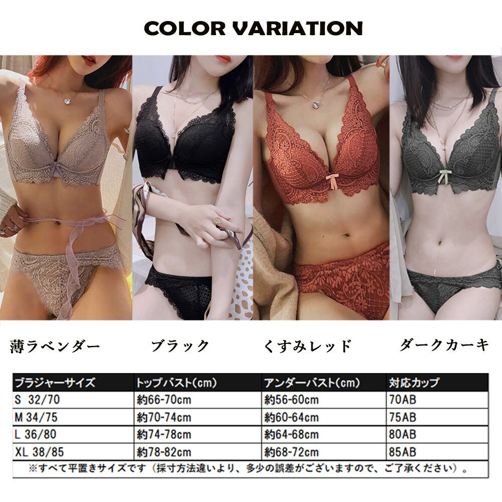 レースブラ ショーツ 花柄 刺しゅう 上下セット フロントリボン ブラセット 脇高 インナー 盛りブラ  美胸 ソフト