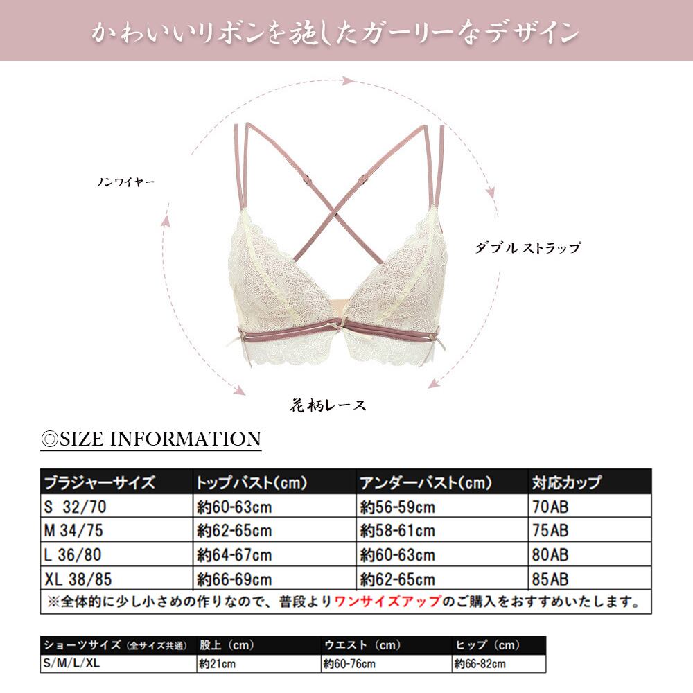ブラジャーリボン付 下着上下セット快適 美胸小胸ナイトブラ