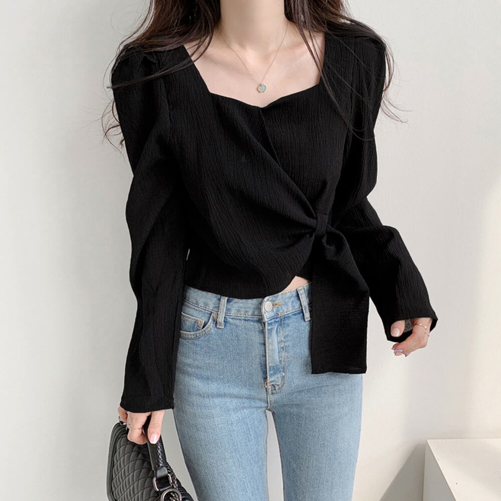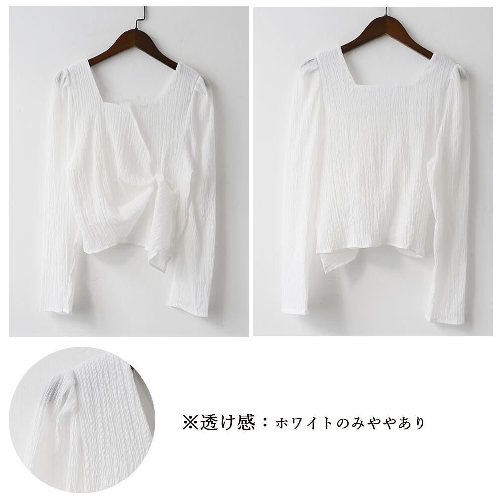 シャツブラウス  レディース 韓国風 アシンメトリートップス 大人 ショート丈 シャツ きれいめ  フェミニン