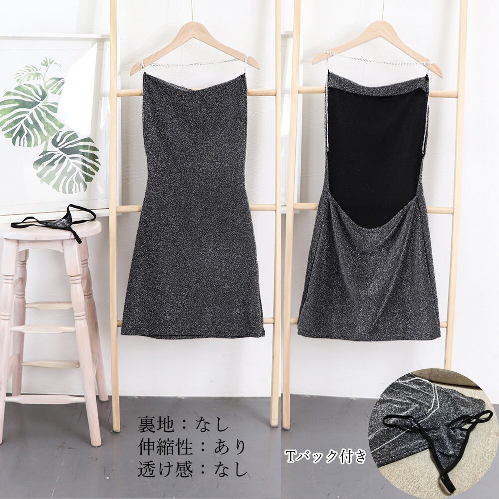 キャミワンピ 2点セット Tバック付き バックオープン レディース フィット感 セクシー 可愛い