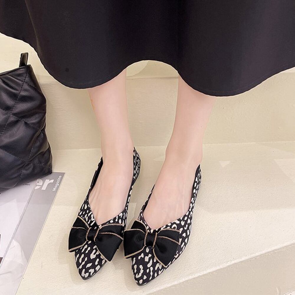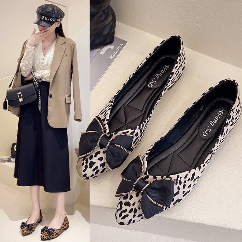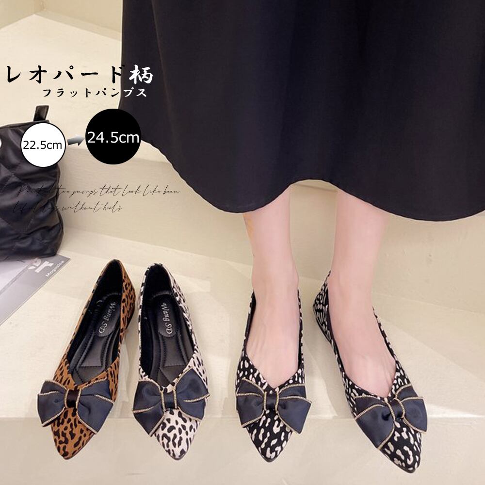レディース おしゃれ フラットパンプス 春夏 ヒョウ柄 ぺたんこシューズ  蝶結び 歩きやすい 美脚 パンプス 通勤 靴