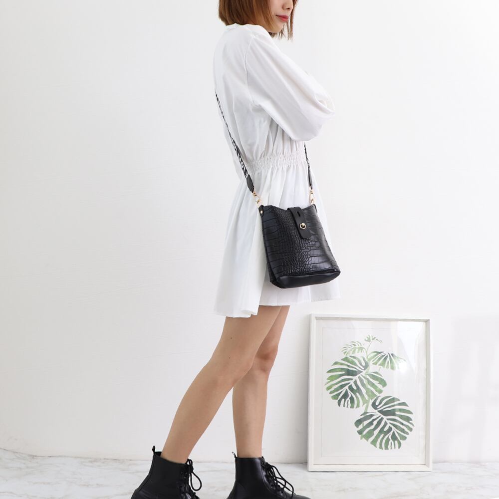 コーデをシックに決めるクロコ型押しミニショルダーバッグ