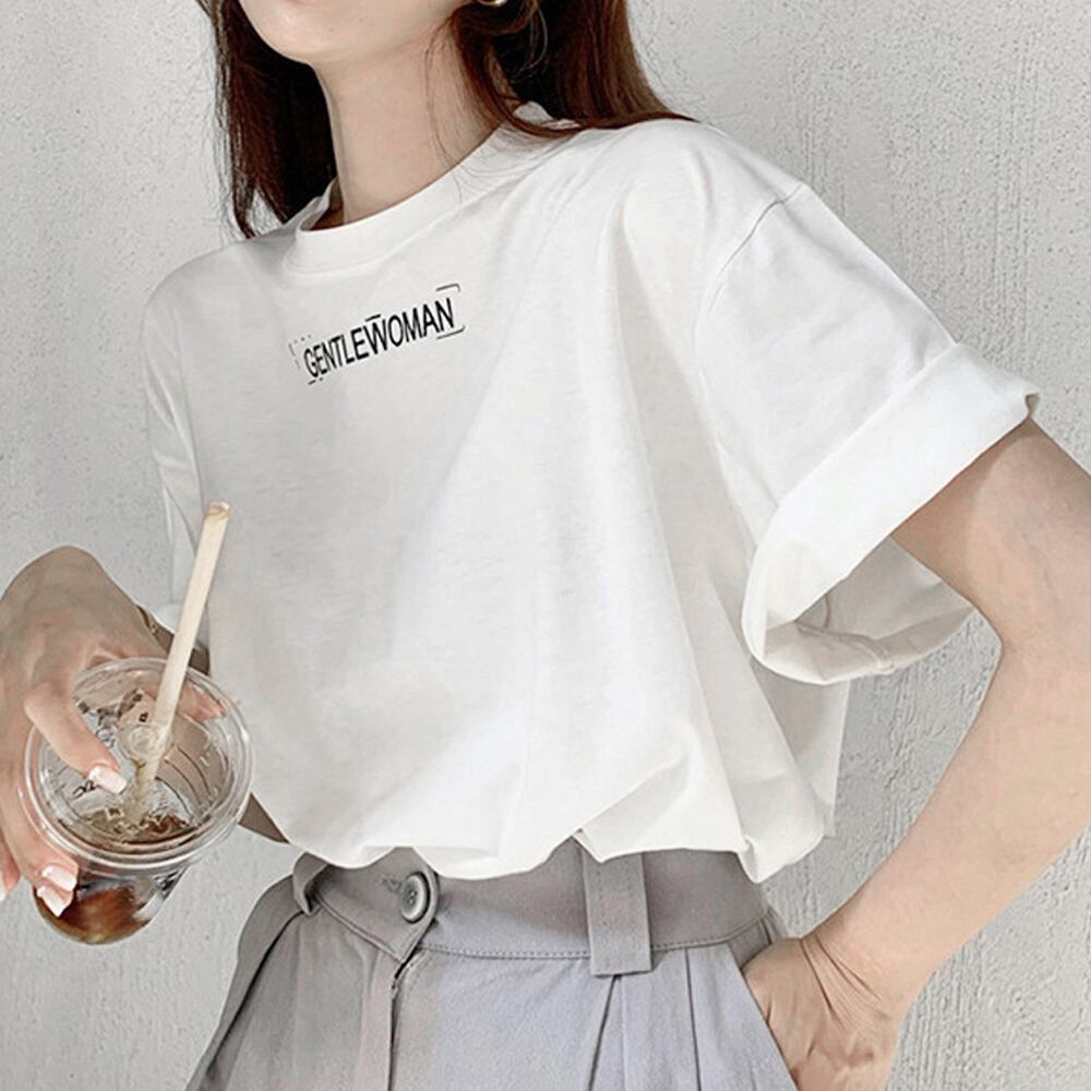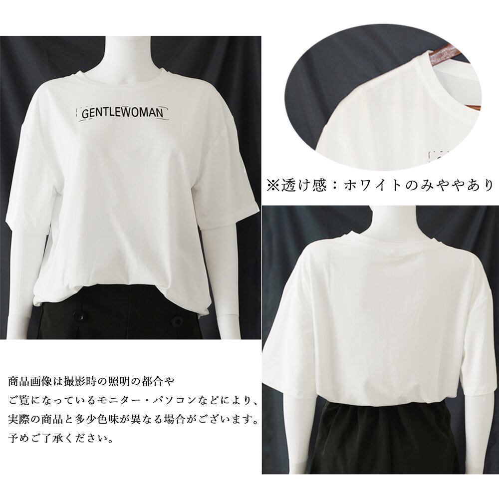 トップス カットソー カジュアル 体型カバー 春夏 オルチャン プリントTシャツ ラウンドネック