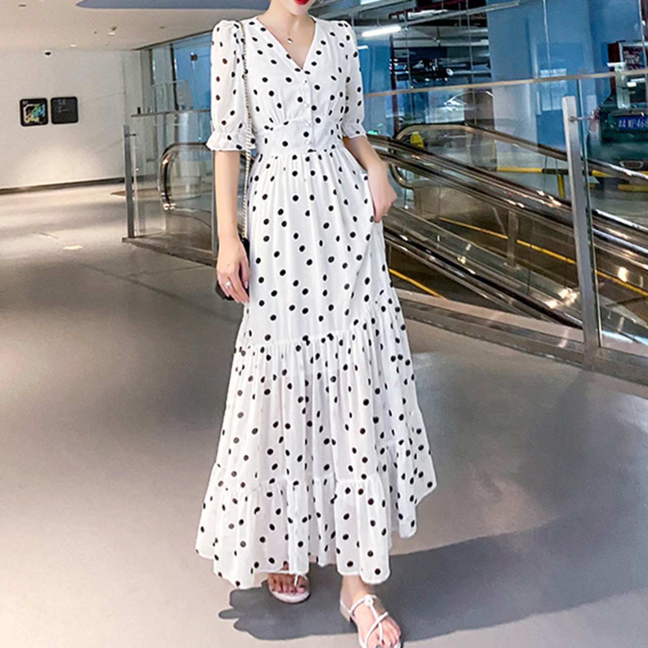 デコルテ見せワンピ 涼しいワンピース 旅行 着やせ女子力