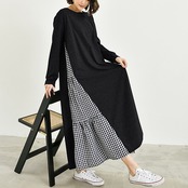 人気柄のギンガムチェックを取り入れてシンプルだけどどことなく遊びゴコロ溢れるデザインのロングスリーブワンピース