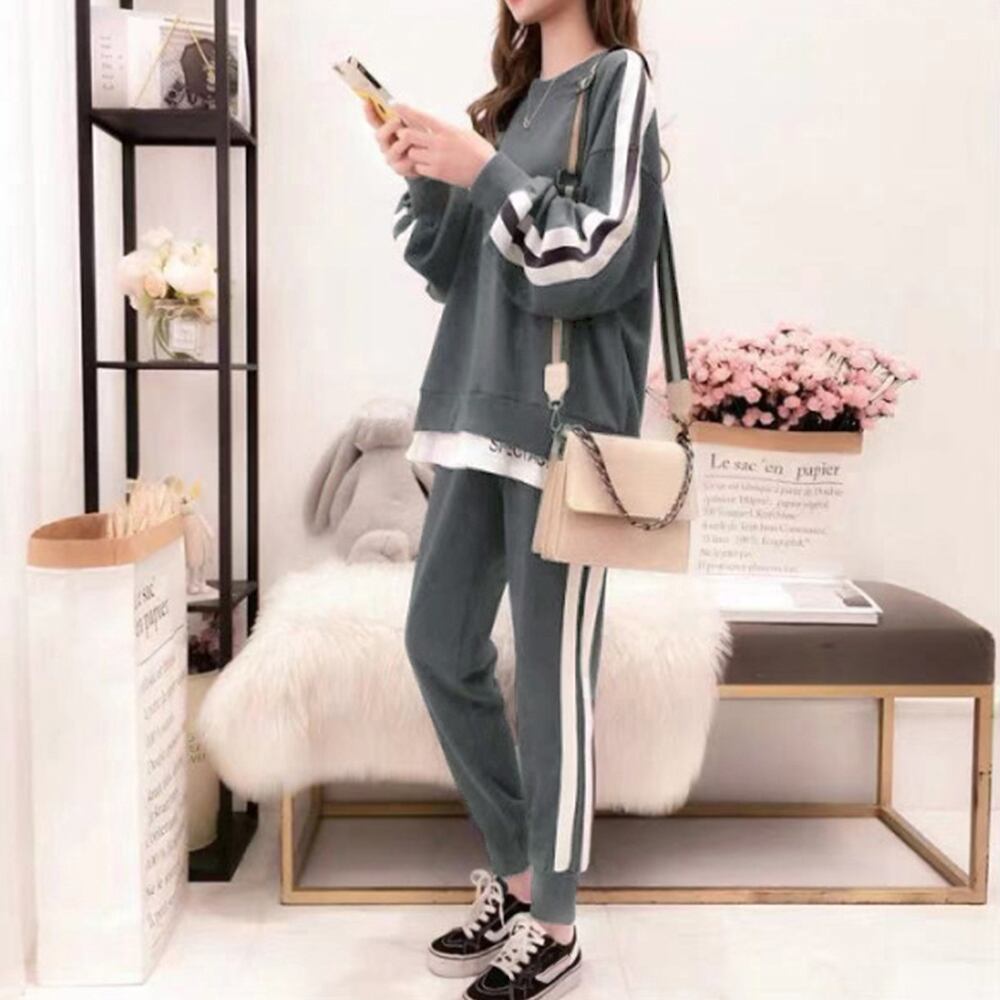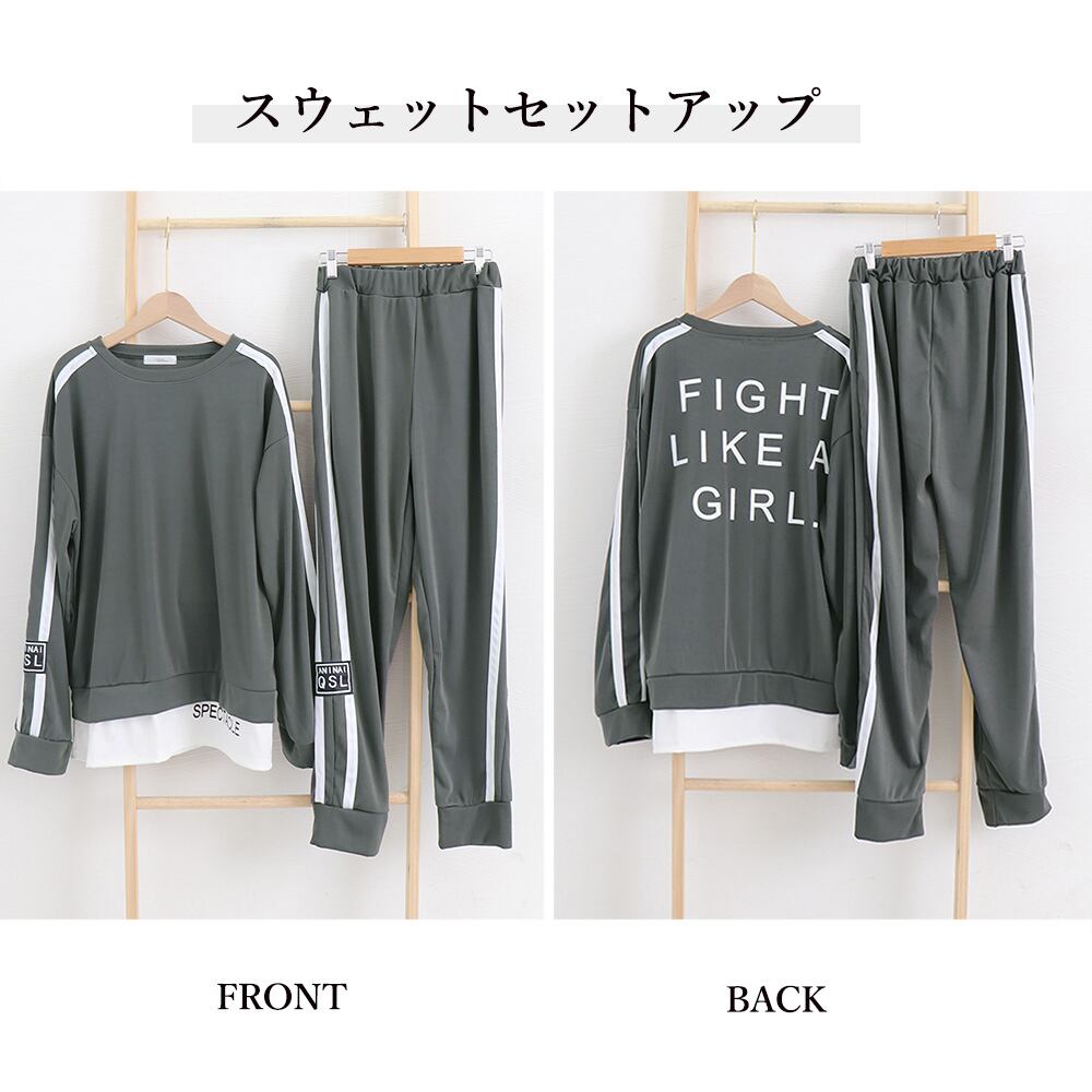 レディース カジュアル バックロゴ トレーナー 2点セット サイドライン ジャージ  上下セット オルチャン楽ちんパンツ