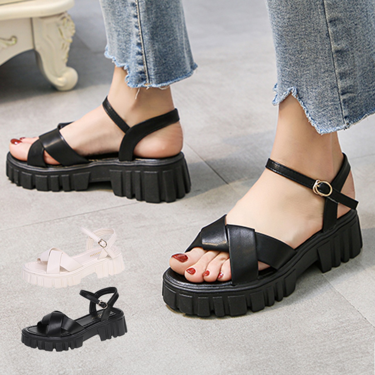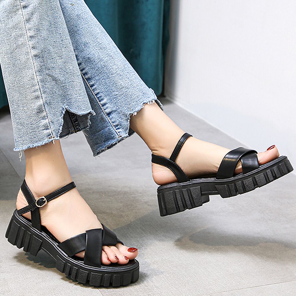 サマーサンダル 厚底ソール ボリューム 太ヒール クロスストラップ 歩きやすい 疲れない 人気 カジュアル オルチャン
