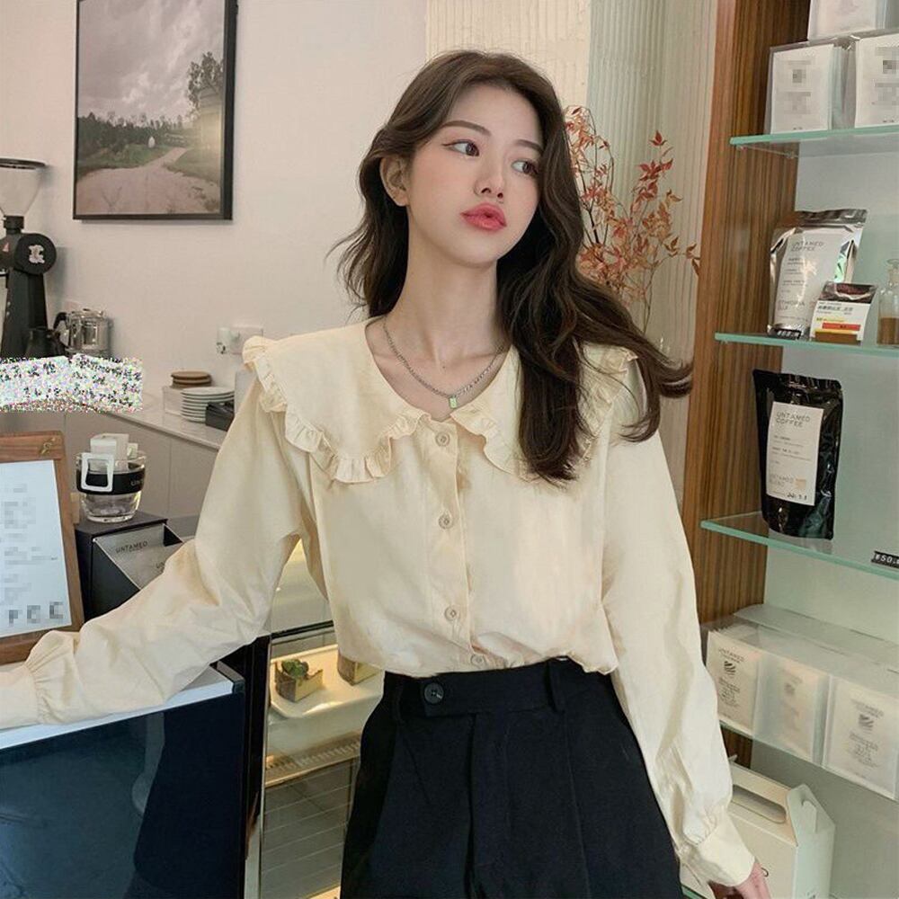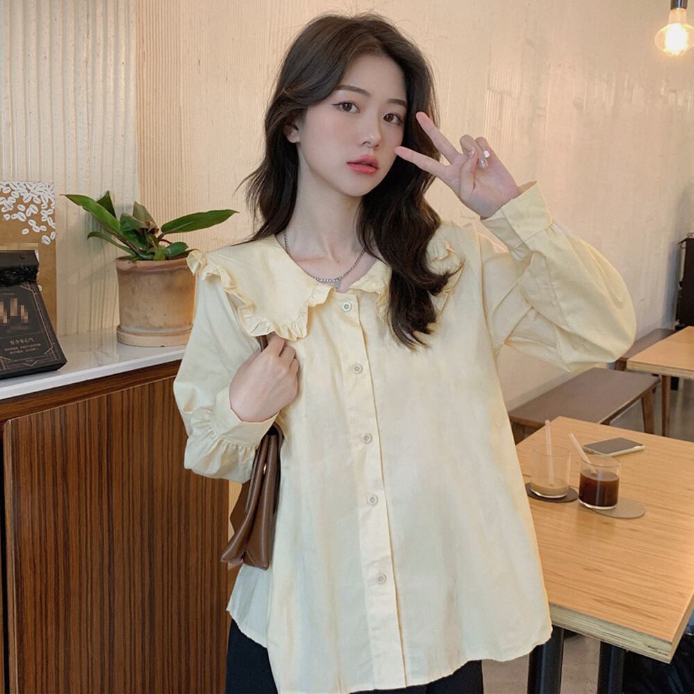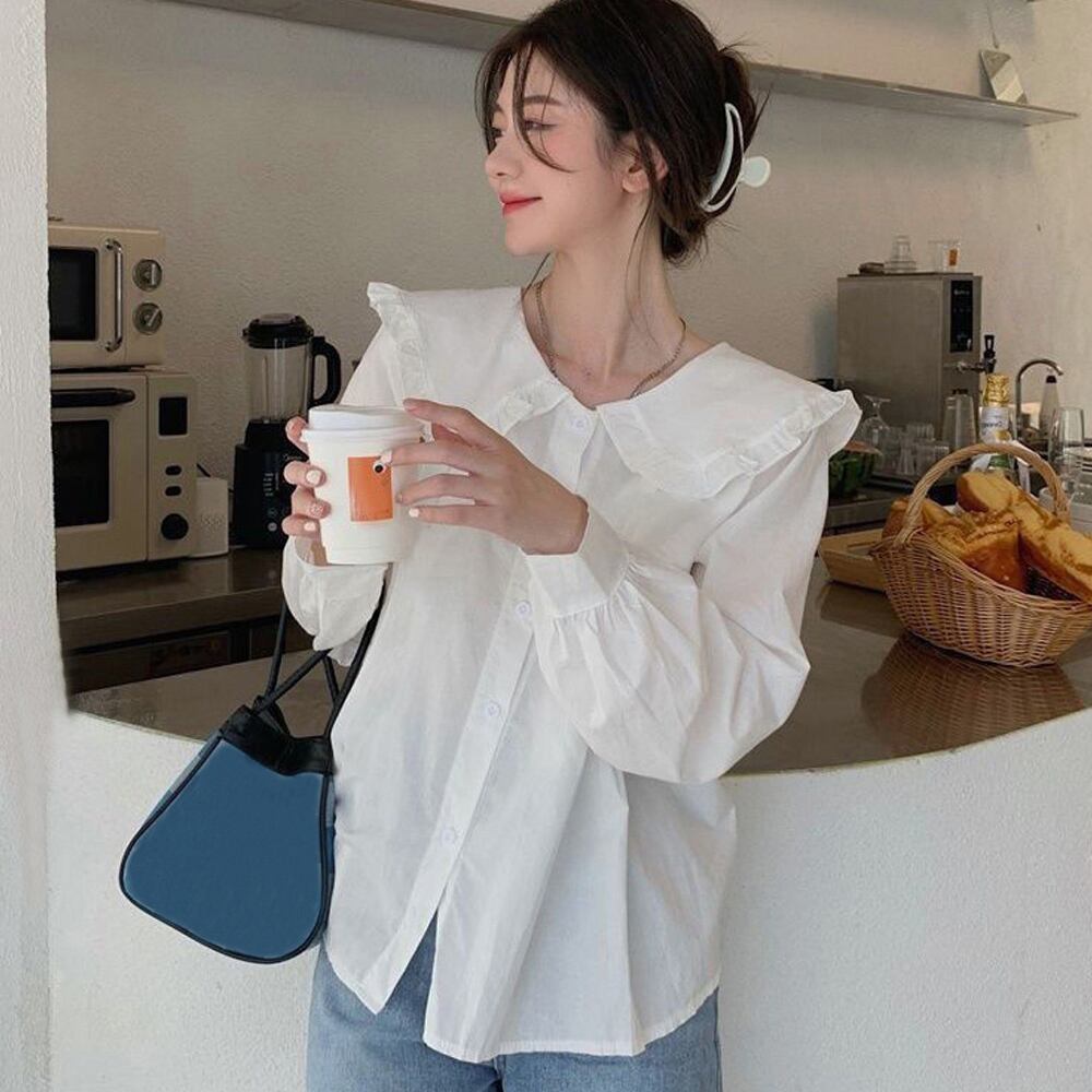 レディース セーラーカラー カジュアル 体型カバー 可愛い シャツブラウス ステートメントカラー