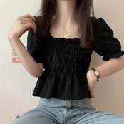 女性らしさの際立つフェミニンなシャーリングブラウス