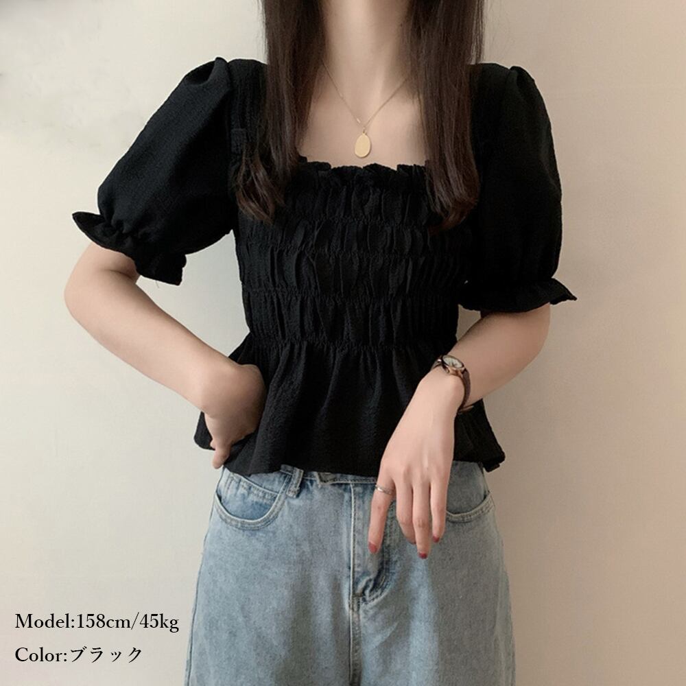 着やせ ブラウス 半袖 無地トップス 鎖骨見せシャツ春夏