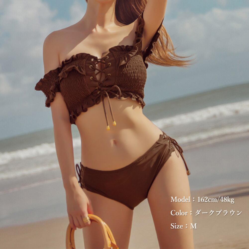レディース フリル ビキニ 編み上げ 上下セット レースアップ ビキニ セクシー セパレート水着 大人可愛い 体型カバー