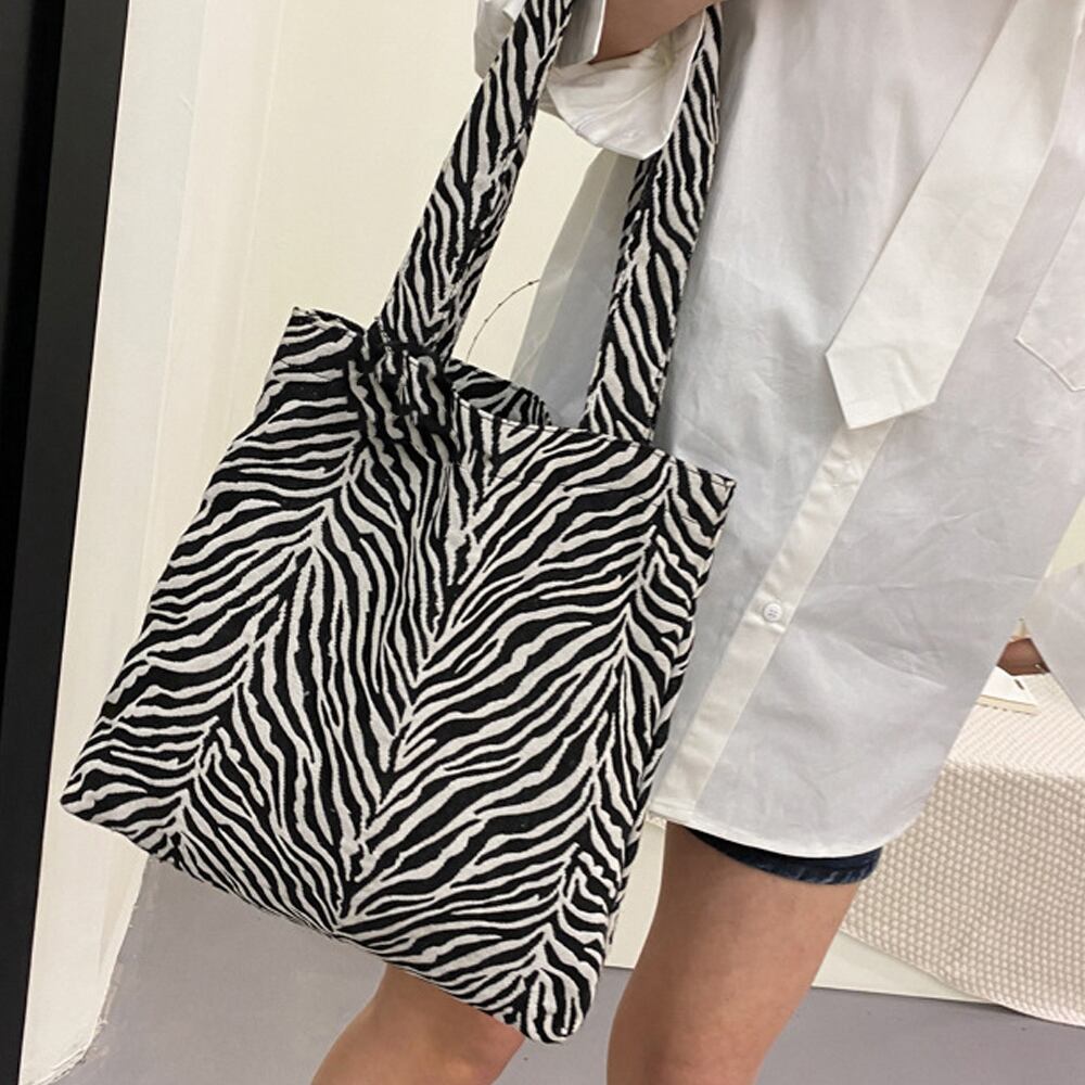 コーデのアクセントになるゼブラ柄のトートバッグ