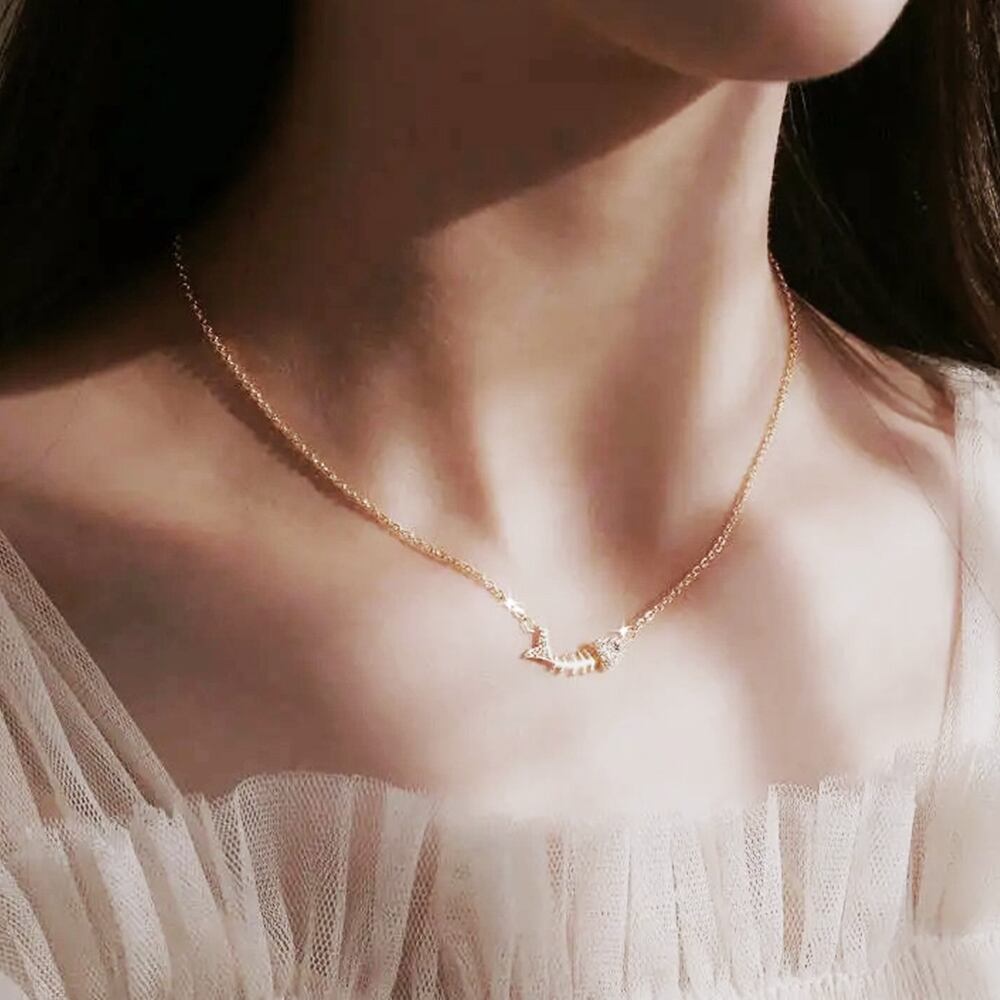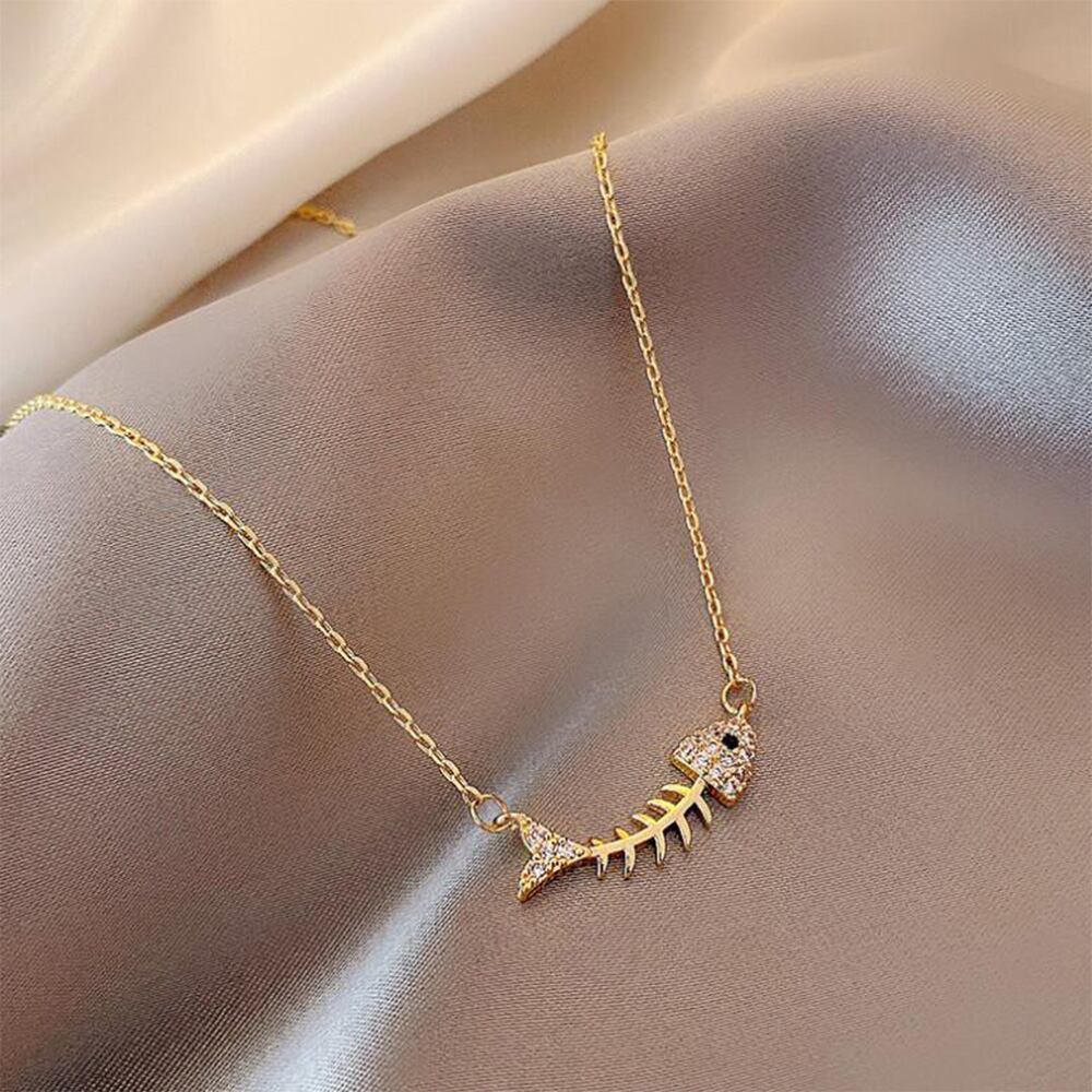 魚柄ネックレス 韓国風 魚の骨モチーフ レディース チェーンネックレス 可愛い 小さい カジュアル ファッション小物
