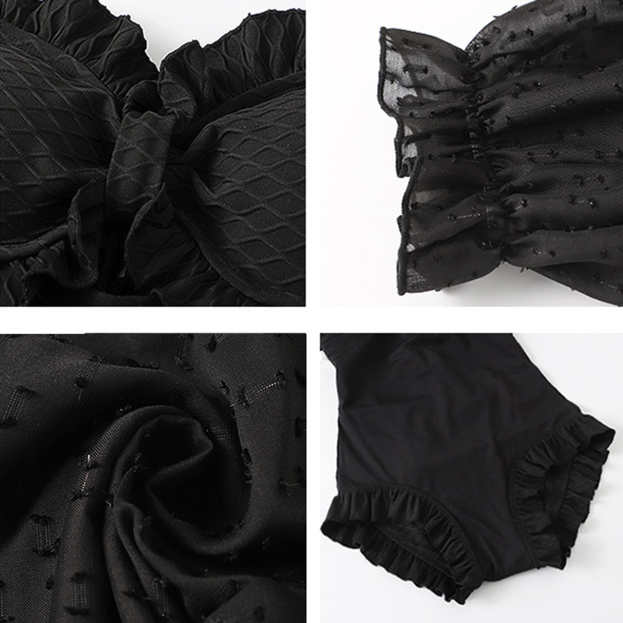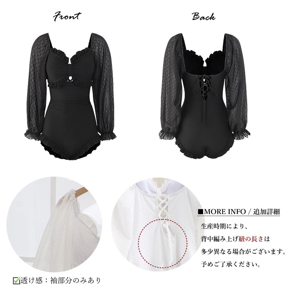 セクシー 水着 チュール袖 胸元リボン フリル プール水着 オフショルダー  バックレースアップ リゾート サマー海