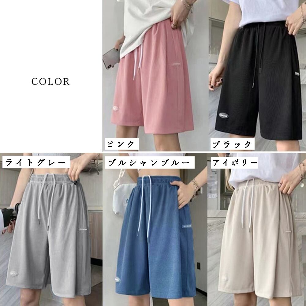 レディース ワイドパンツ ハイウエスト 半ズボン ウエストゴム 運動着 ボトムス 五分丈 接触 冷感 パンツ 夏