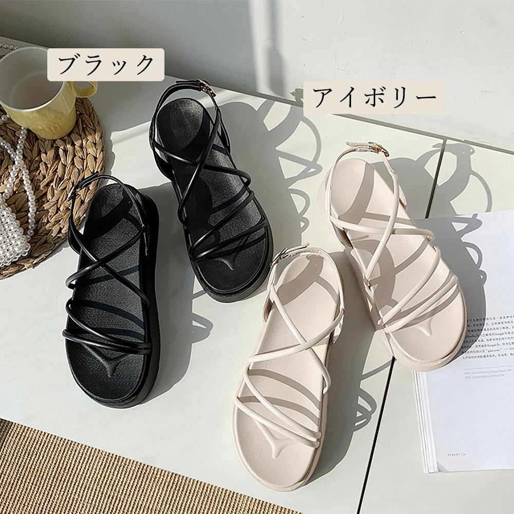 ストリングサンダル コードサンダル 細めストラップ 軽量 夏靴 フラットサンダル 美脚 歩きやすい 痛くない カジュアル