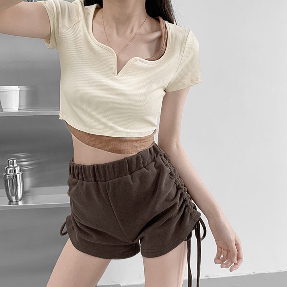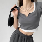 ヒップホップ 半袖 プルオーバー 春夏 デコルテ 可愛い