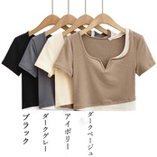 デコルテラインを綺麗に見せてくれるショート丈半袖トップス
