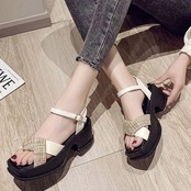 厚底なので履くだけで即席スタイルアップになる異素材mixツイストストラップの春夏新作美脚サンダル