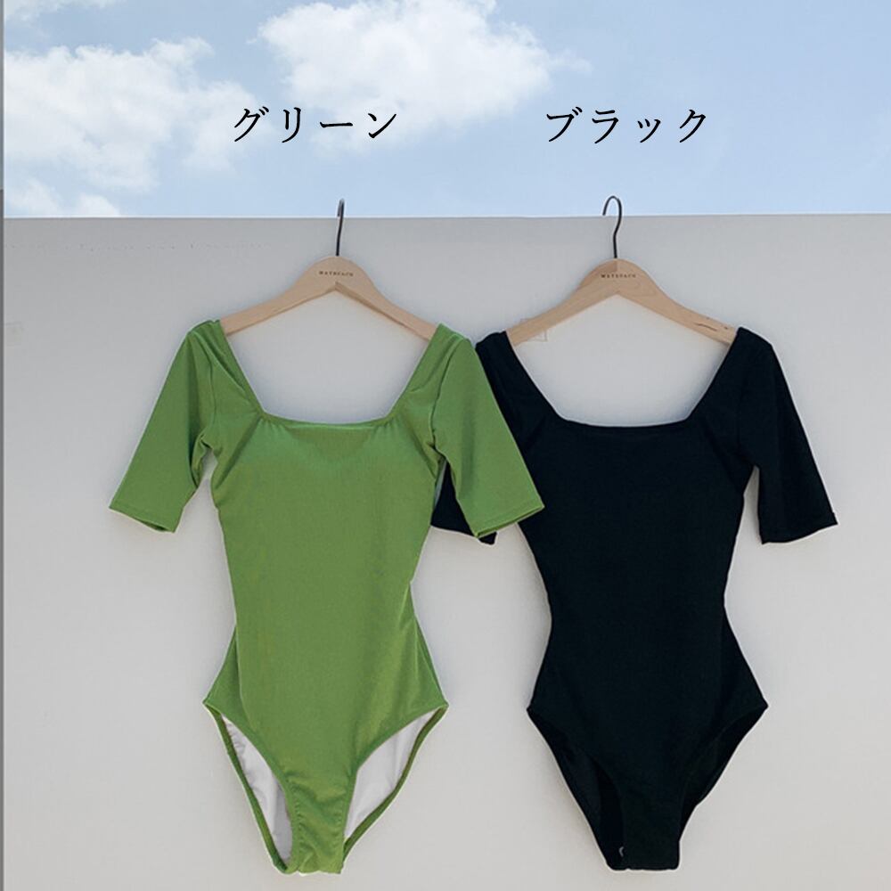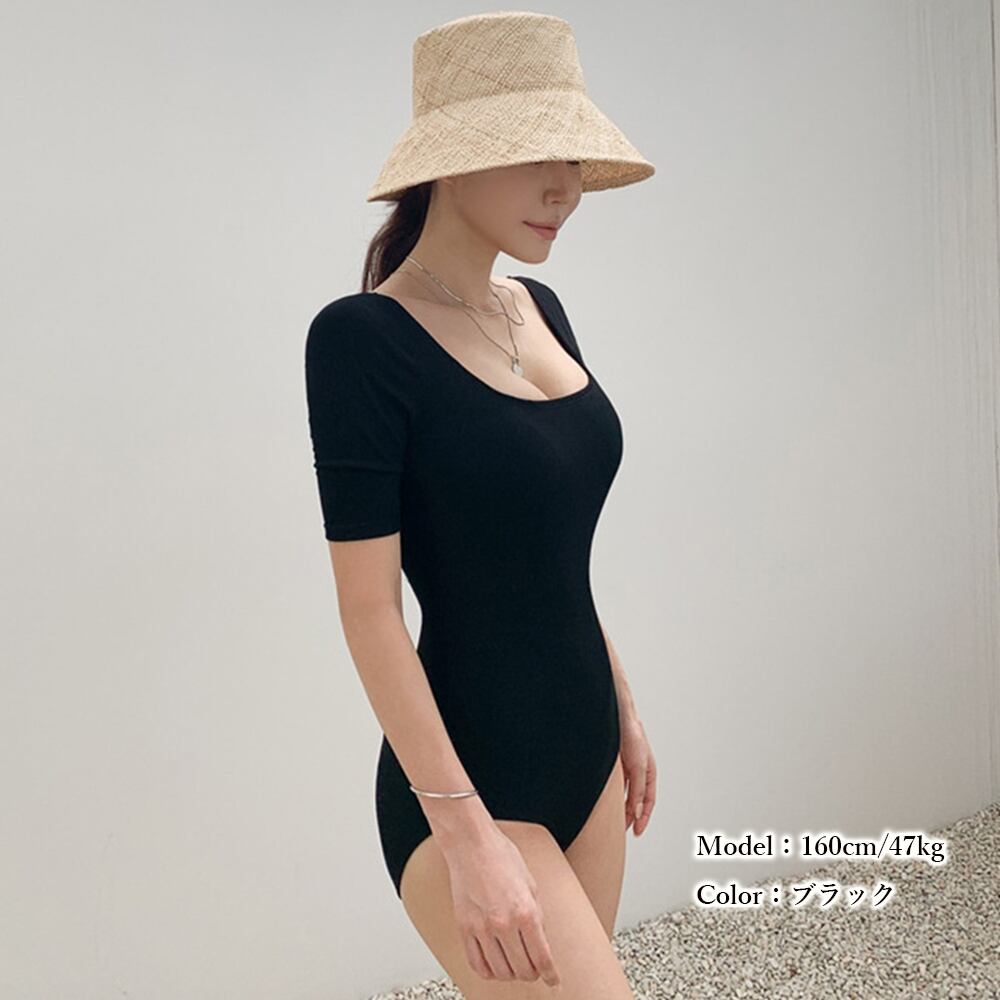 水着 黒 夏海 露出控えめ半袖水着 盛れる ママ水着