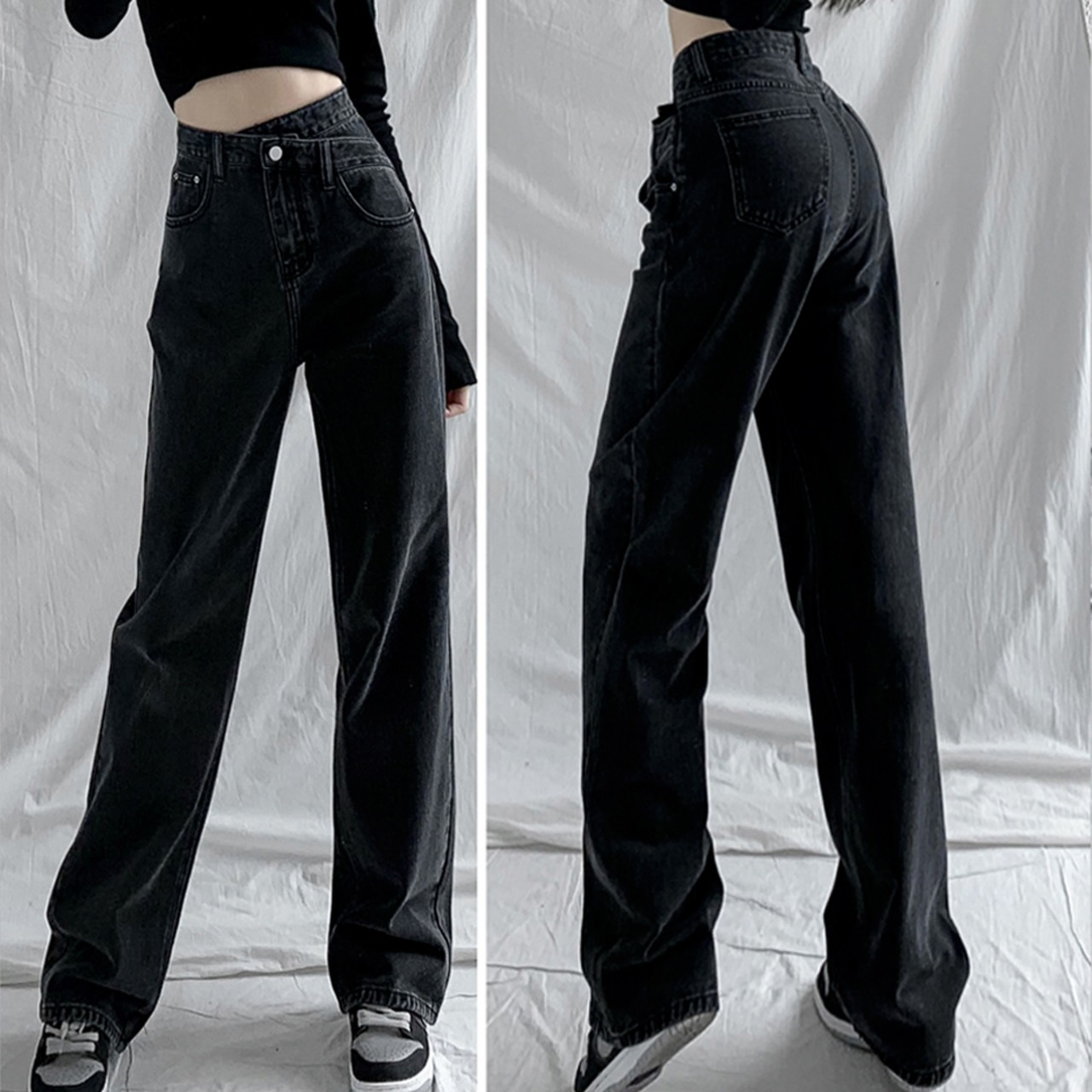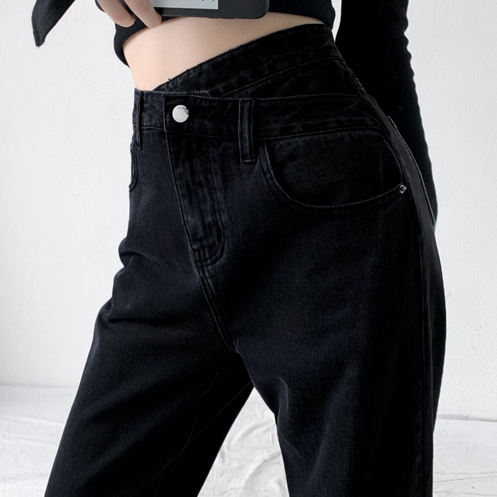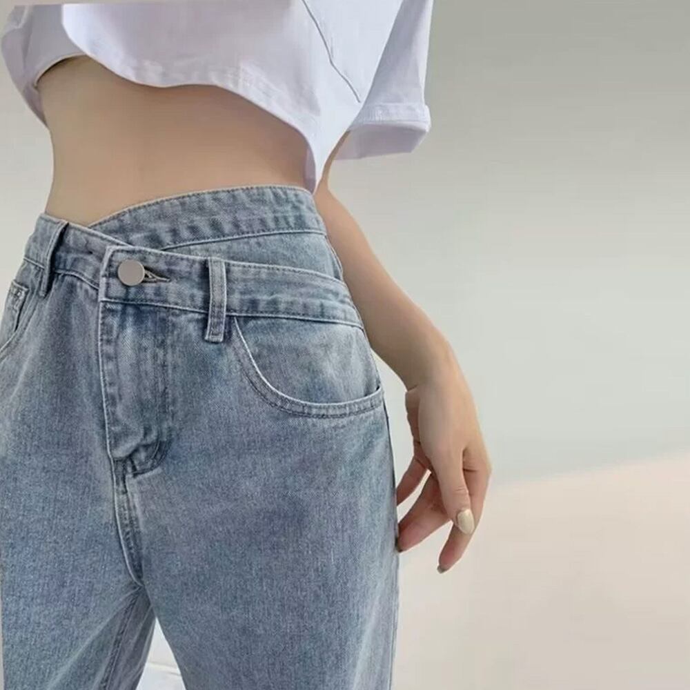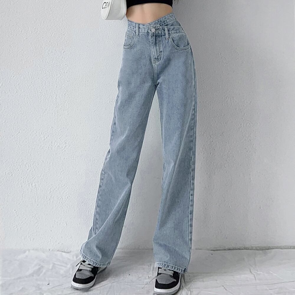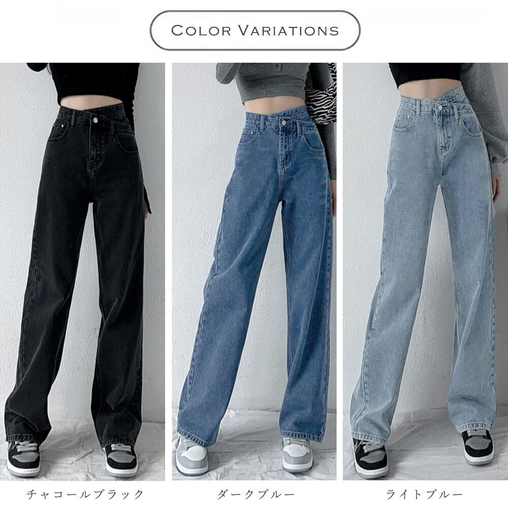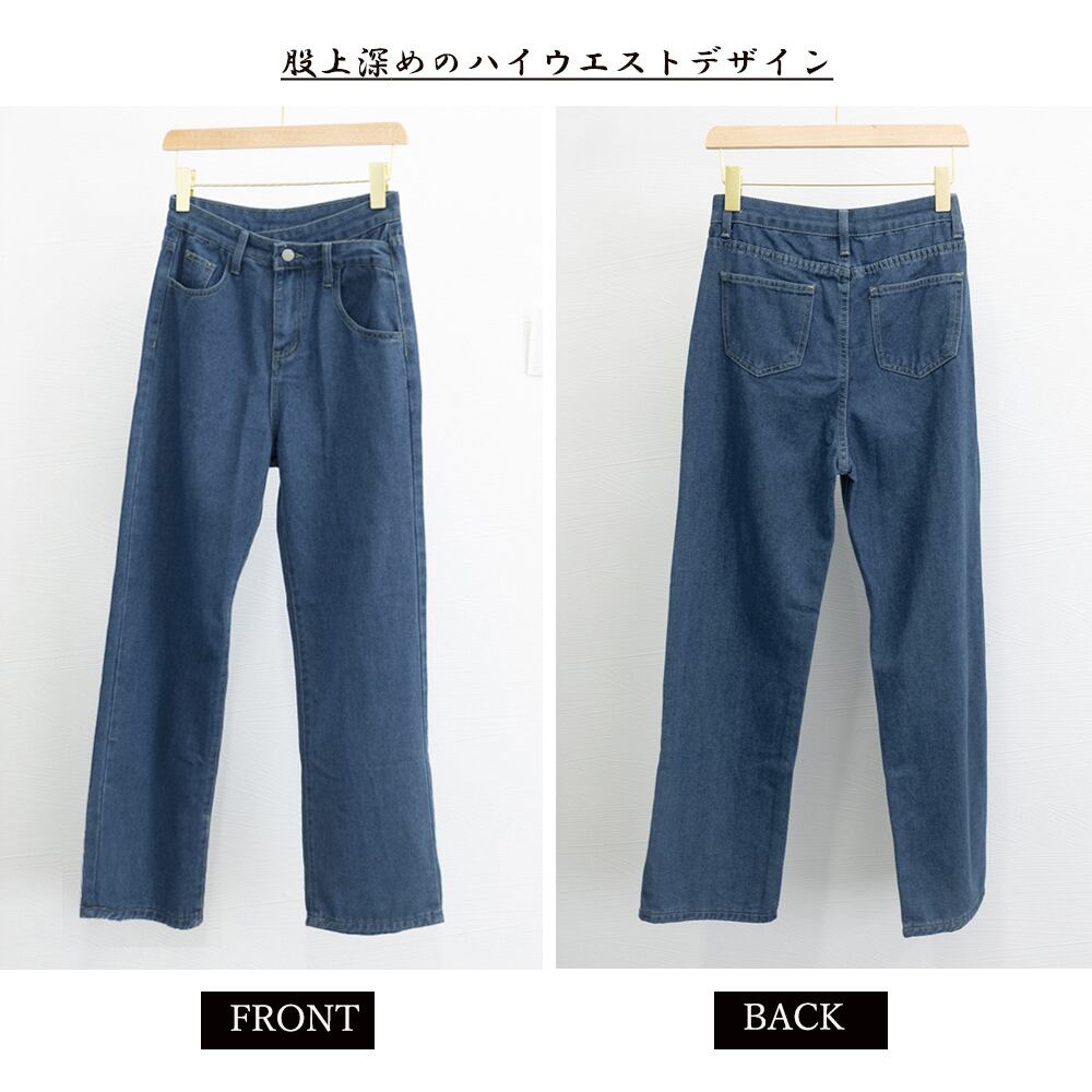 デニムパンツ レディース 美脚 ハイウエスト ジーンズ セミワイド ジーパン クロスウエストオルチャン 韓国 定番デニム