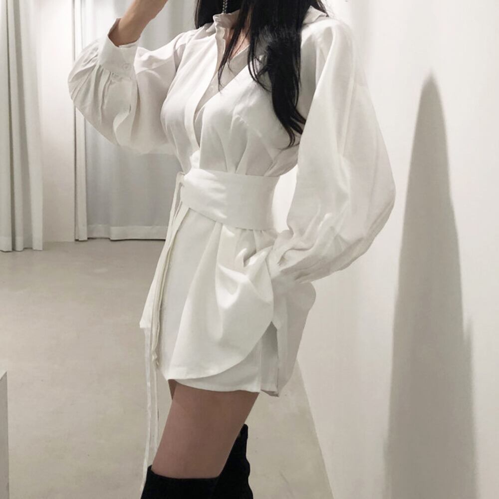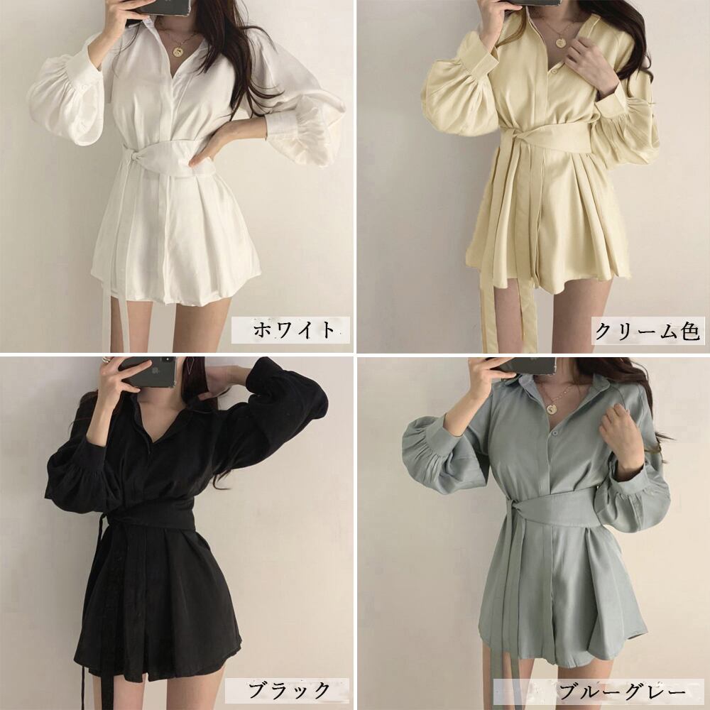 韓国 長袖シャツブラウス  ショートパンツ 2点セット きれいめ  ボリューム袖 カーディガン パフスリーブ トップス