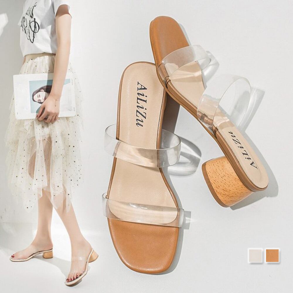 チャンキーヒール サンダル スクエアトゥ サマーサンダル 履きやすい ミュール 美脚サンダル 韓国風 スリッパサンダル
