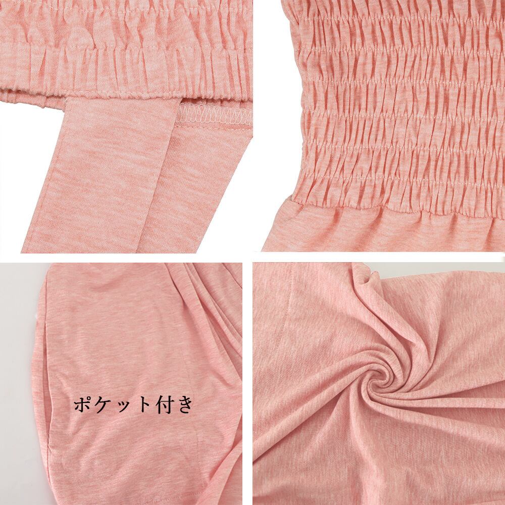 トップス部分は伸縮性のあるシャーリングゴムが入っていて、程よくフィットしメリハリのあるシルエットが楽しめ