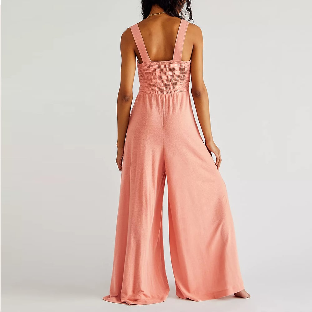 着やせ サロペット 無地 フレアパンツ リゾートワンピース