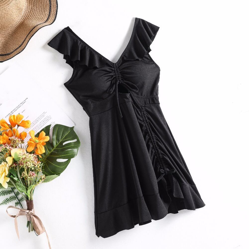 トレンド感を抑えながら、しっかり体型カバーもこなせるシルエット感ワンピース水着