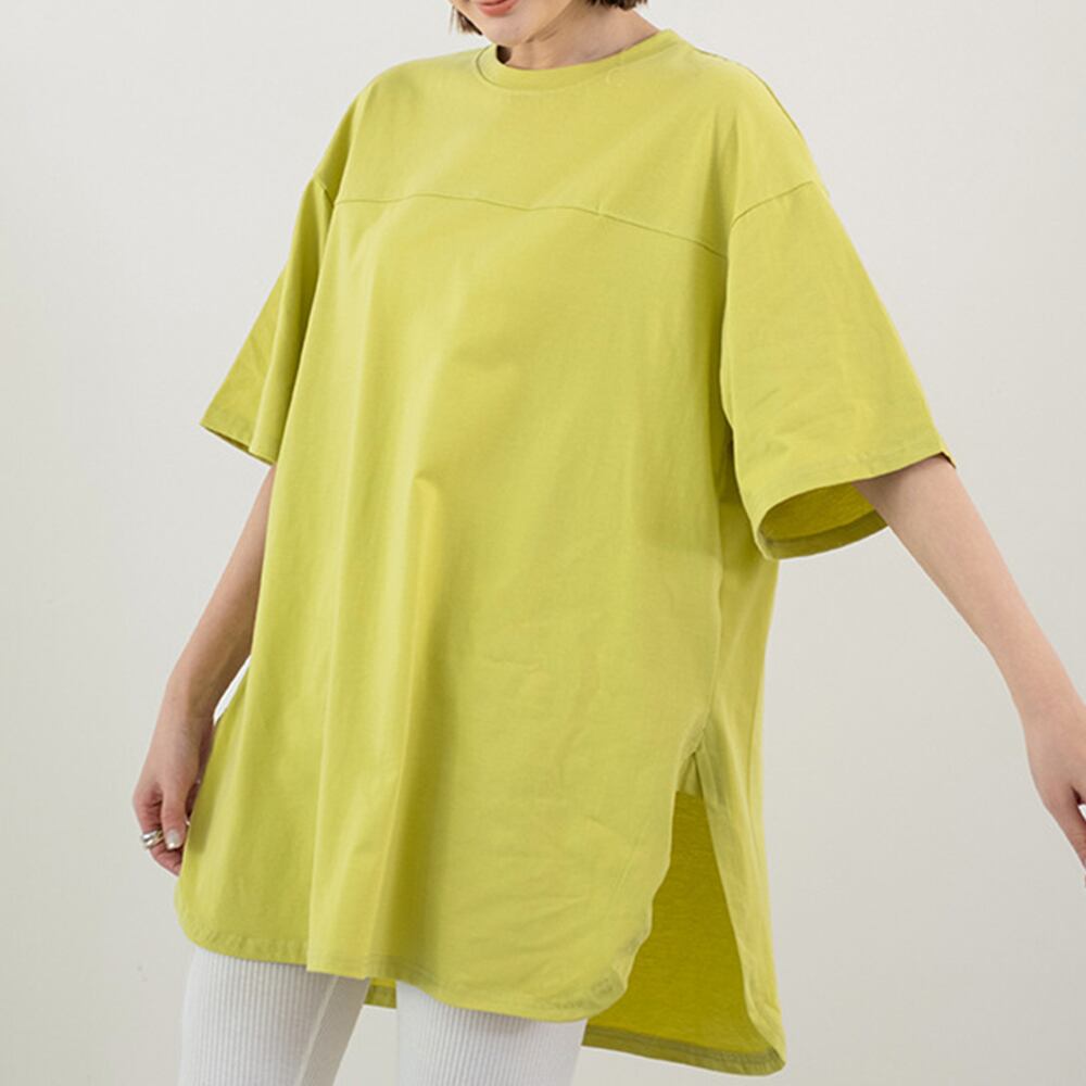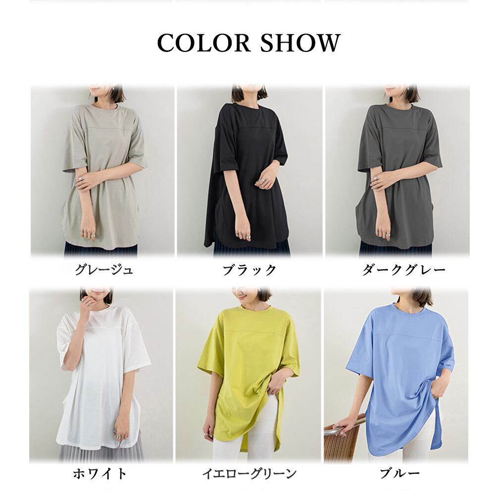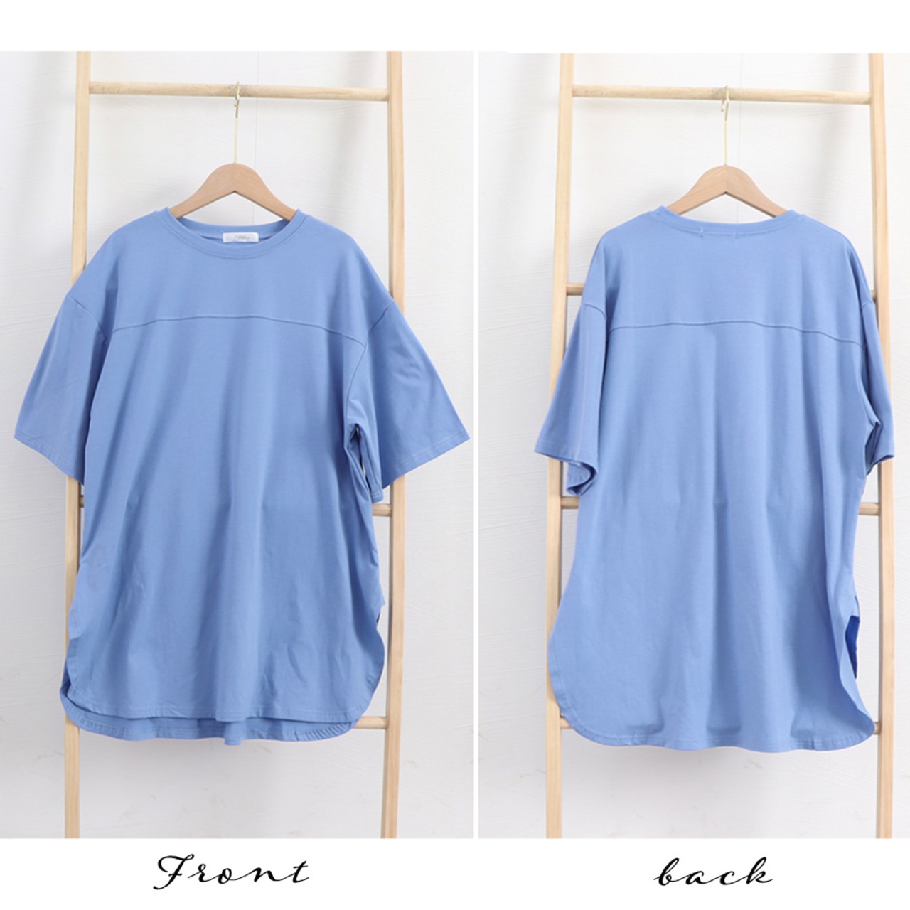 ゆったり カットソー  韓国 半袖 サマーTシャツ オーバーサイズ シンプル ロング丈トップス 体型カバー 着やせ 夏服