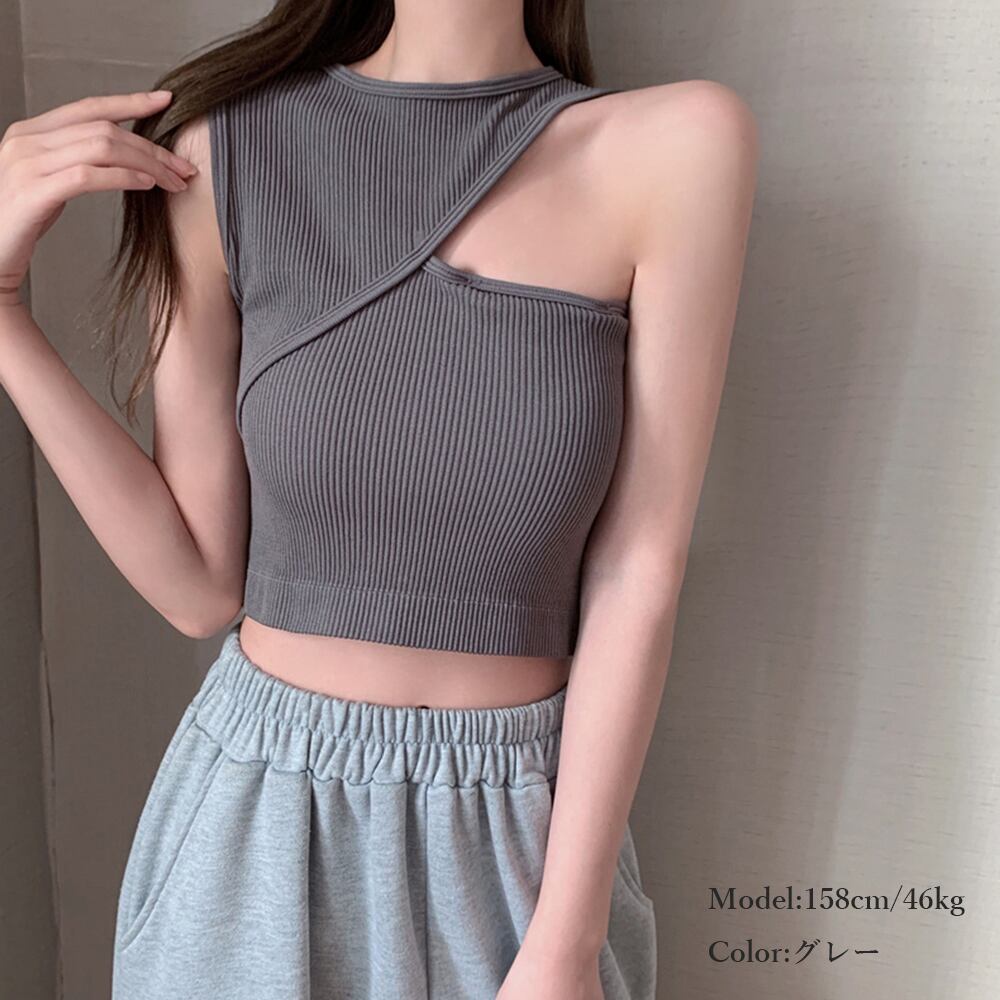 レディース ショート丈 イレギュラー チューブトップ ノースリーブ スポーツブラ セクシー リブタンク 肌見せ