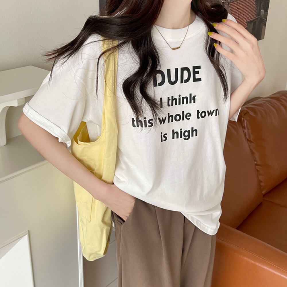 ラウンドネックTシャツ レディース ゆったり プルオーバー 体型カバー 半袖 大人カジュアル 前後差 夏服 韓国風 通学