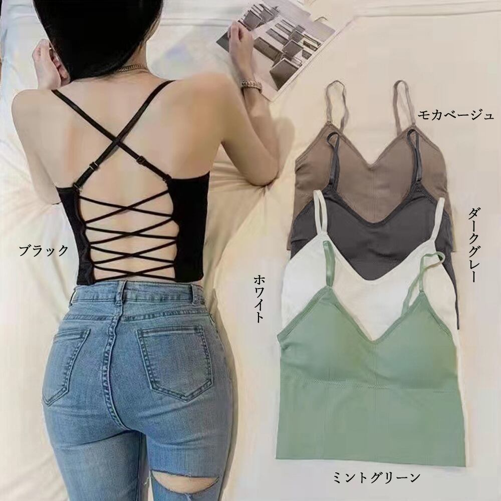レディース バックレースアップ キャミソール 人気 重ね着 セクシー下着 肌着 ブラキャミ ヨガキャミ 肩紐調節可能