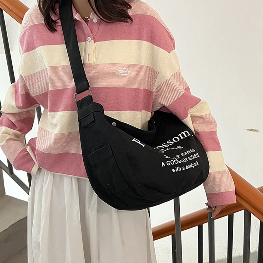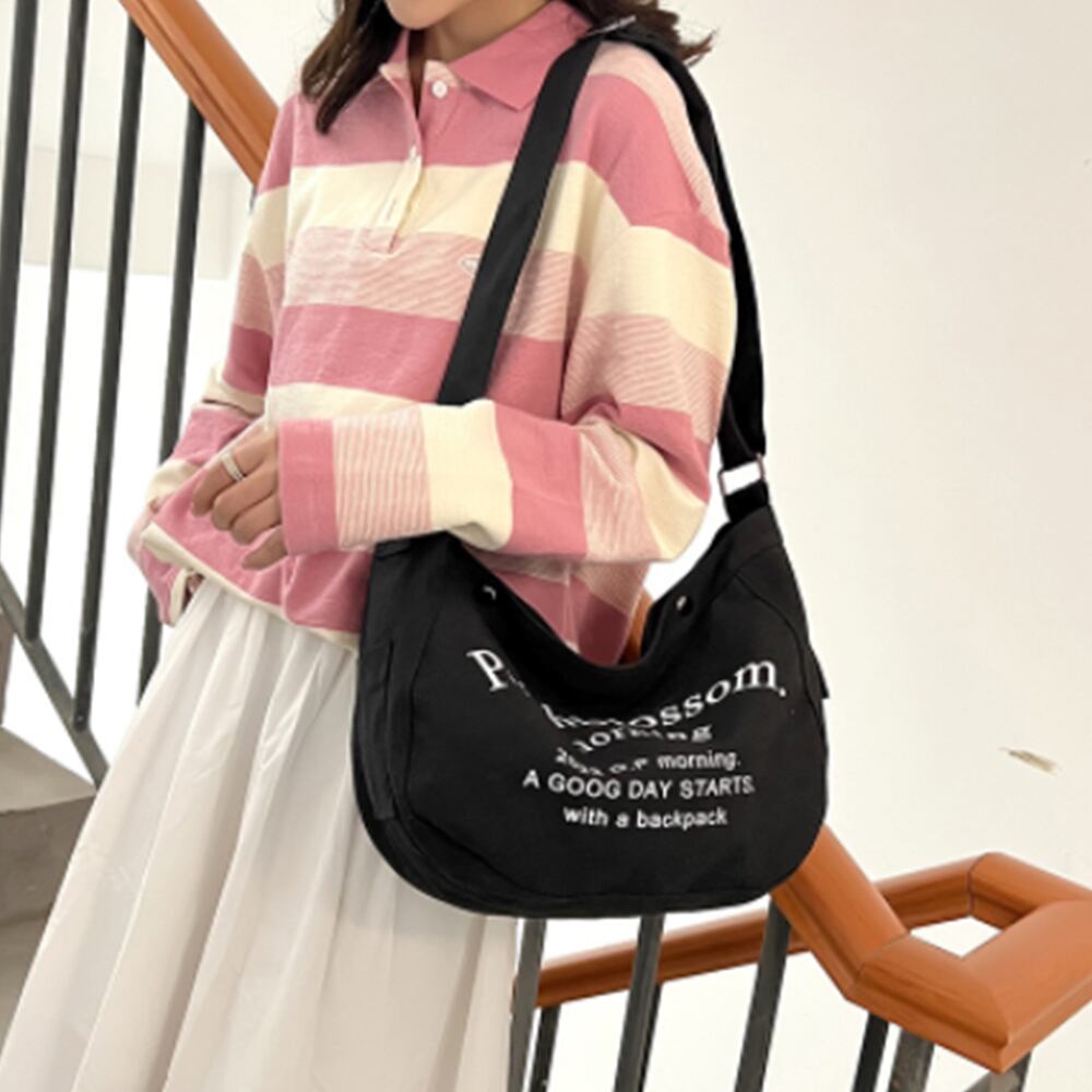 普段使用にもってこいのシンプルロゴキャンバスショルダーバッグ