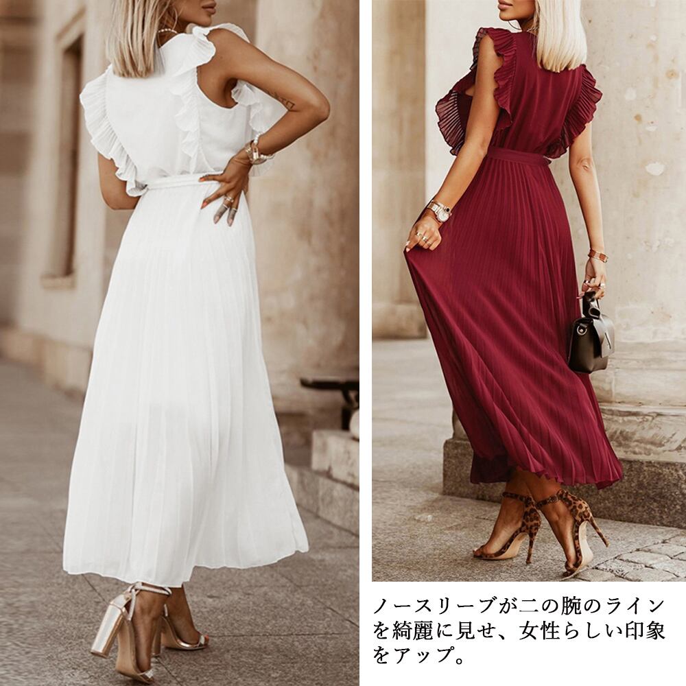 サマーワンピース白 結婚式マキシワンピ セクシー胸元ワンピ